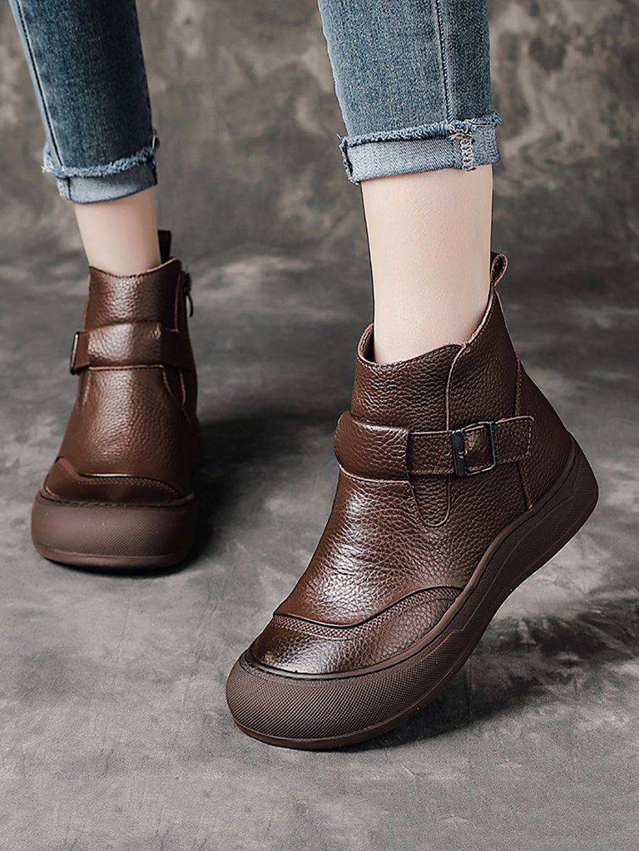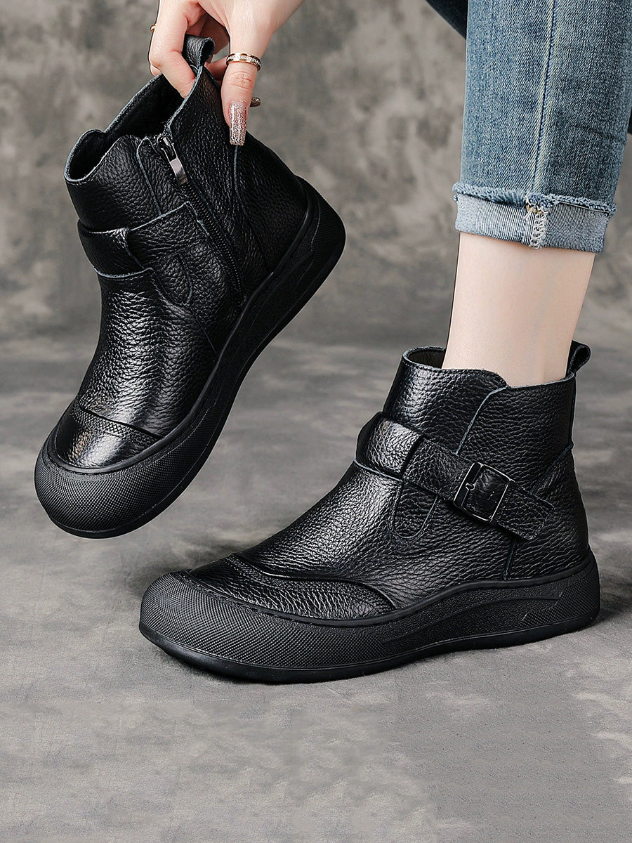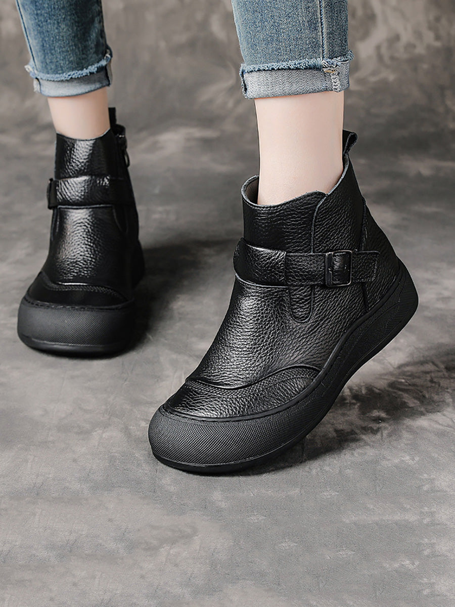 Women Winter Genuine Leather Spliced Platform Boots