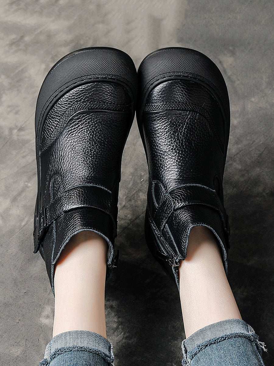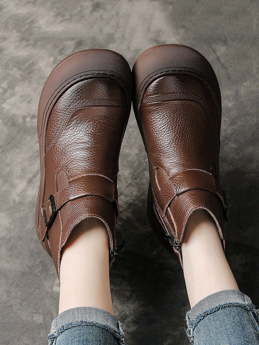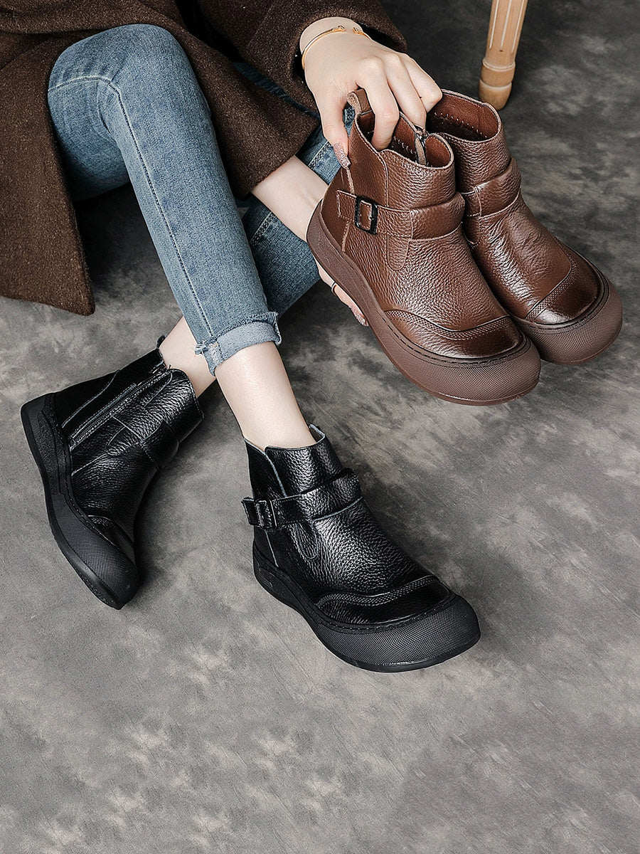 Women Winter Genuine Leather Spliced Platform Boots