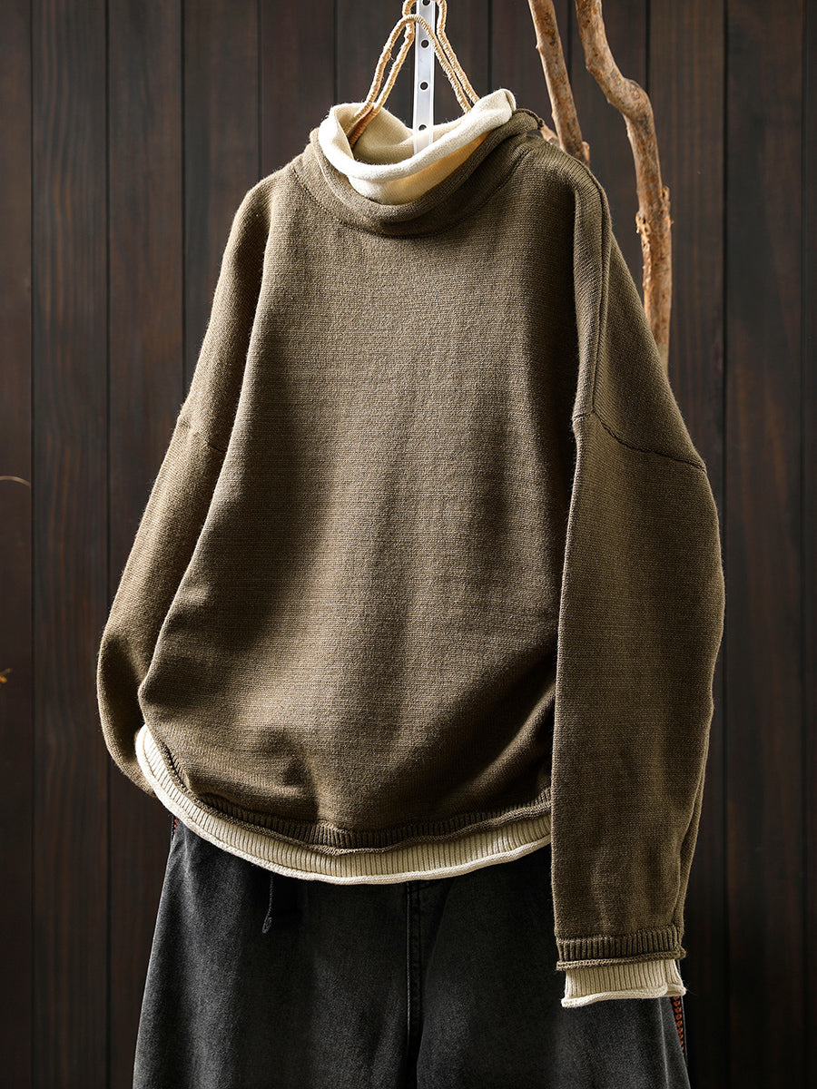 Women Autumn Artsy Fake Two Turtleneck Sweater