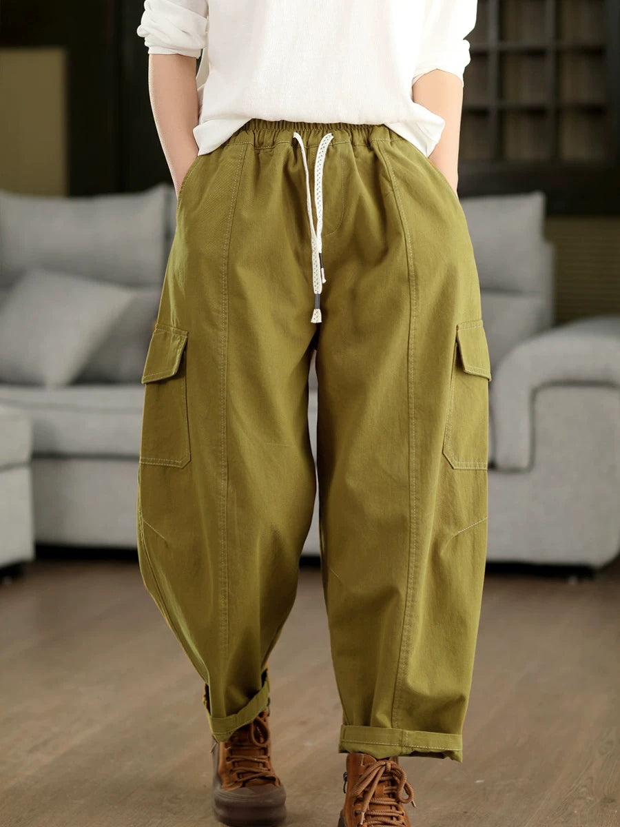 Women Spring Casual Pure Color Cotton Harem Pants