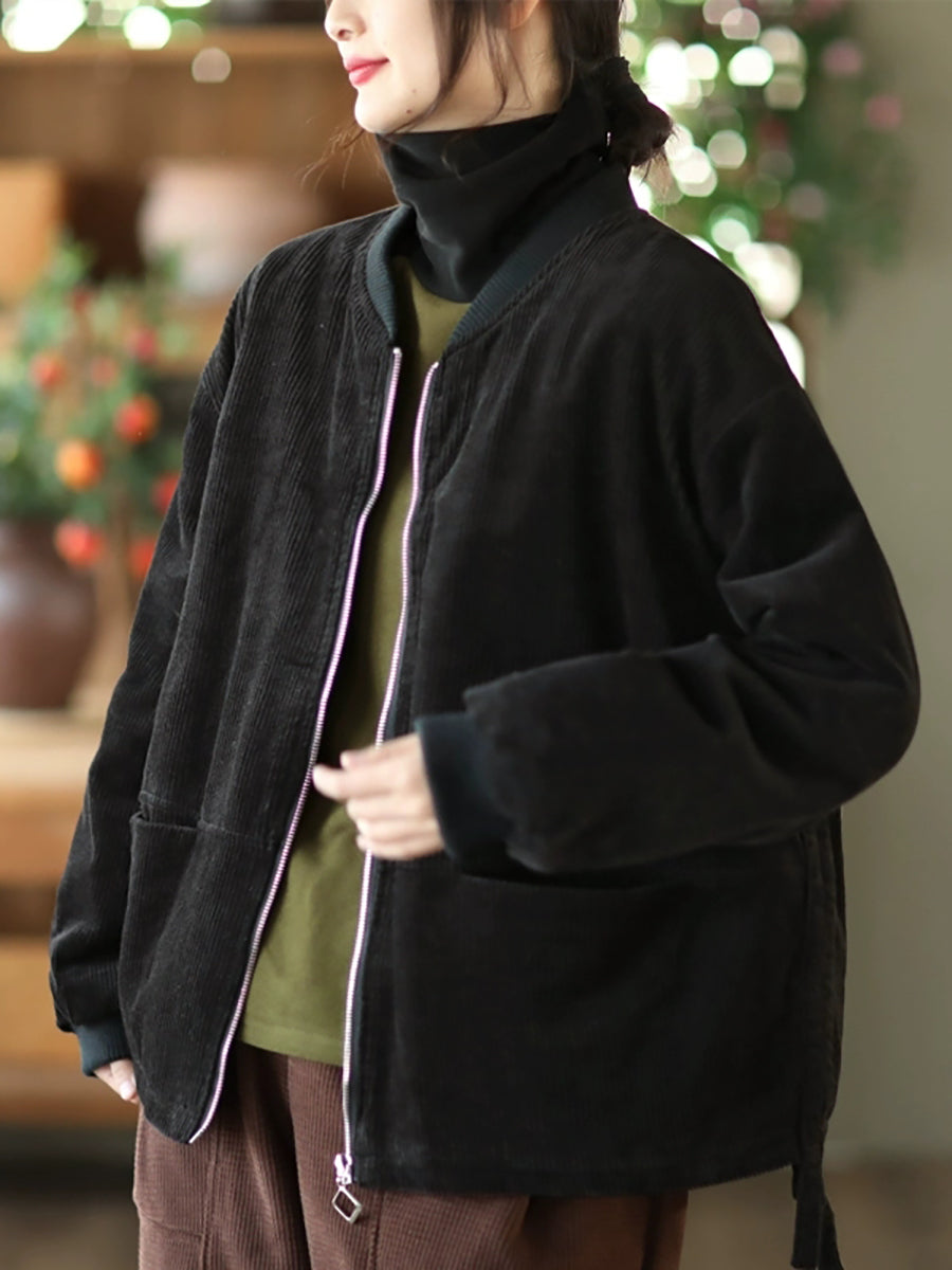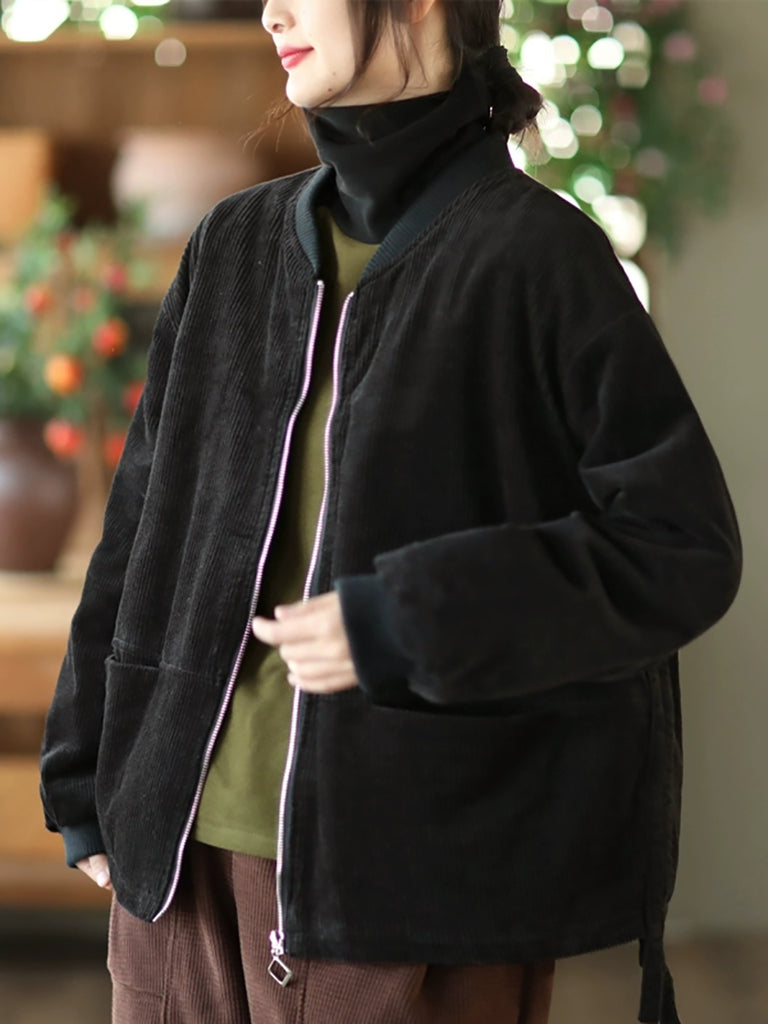 Women Autumn Vintage Pure Color Corduroy Jacket
