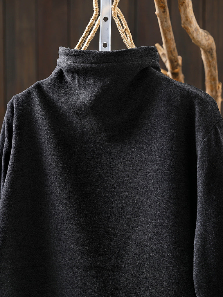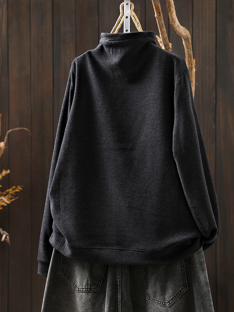 Women Autumn Pure Color Cotton Half-Turtleneck Blouse
