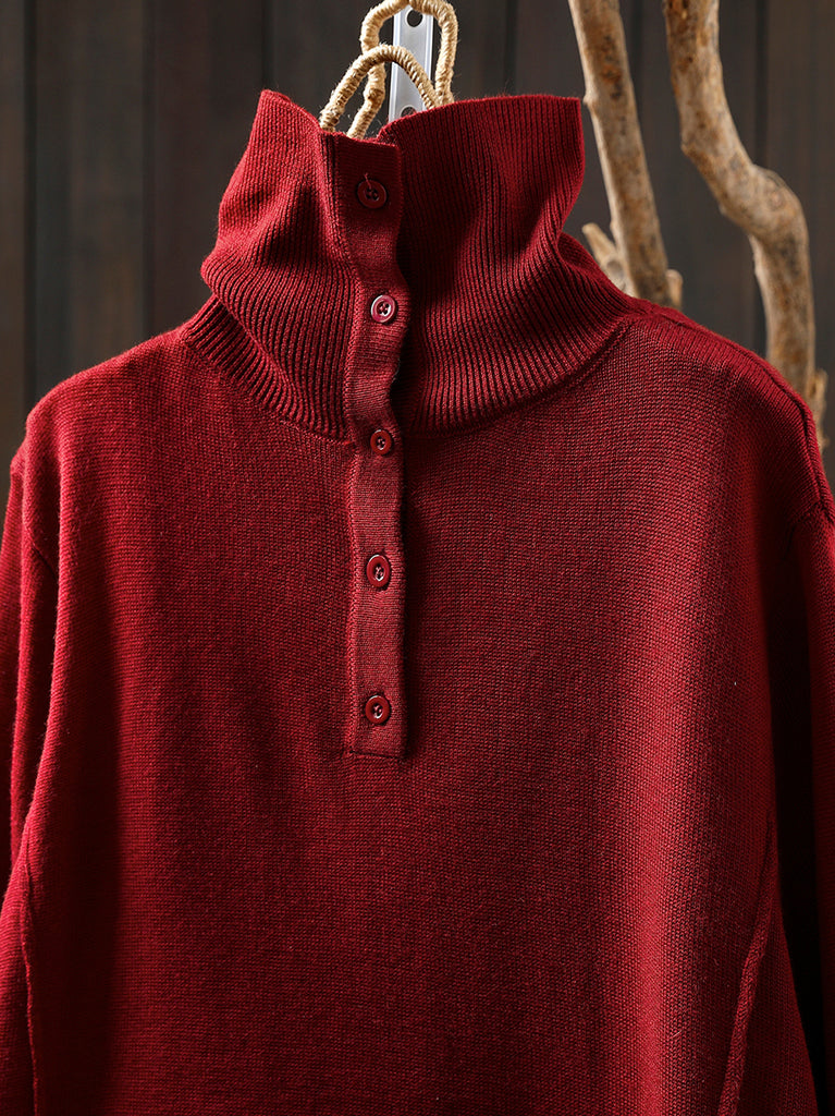 Women Autumn Pure Color Knitted Turtleneck Blouse