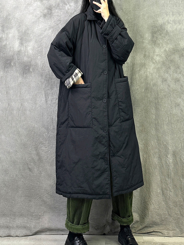 Women Winter Pure Color Turn-down Collar Long Padded Coat