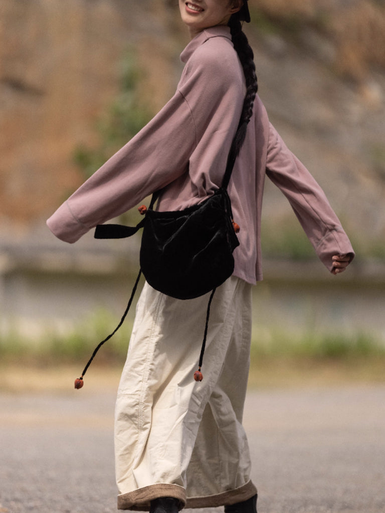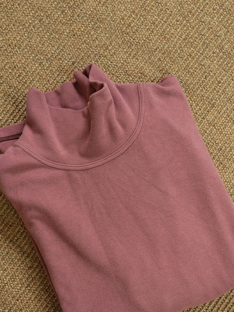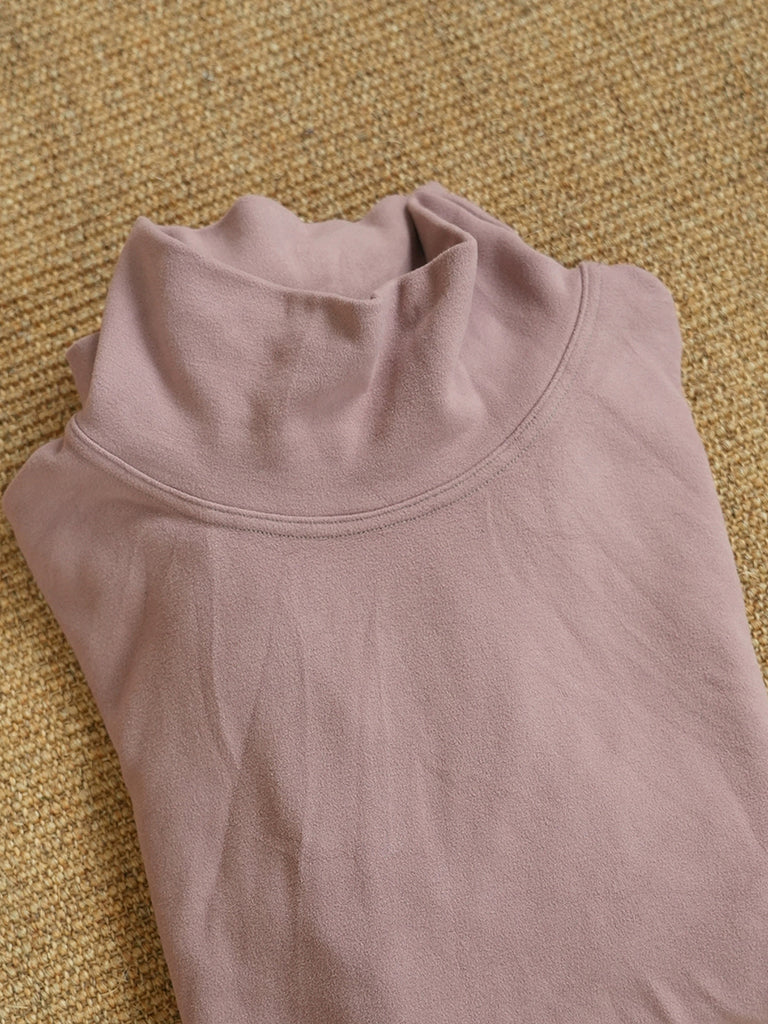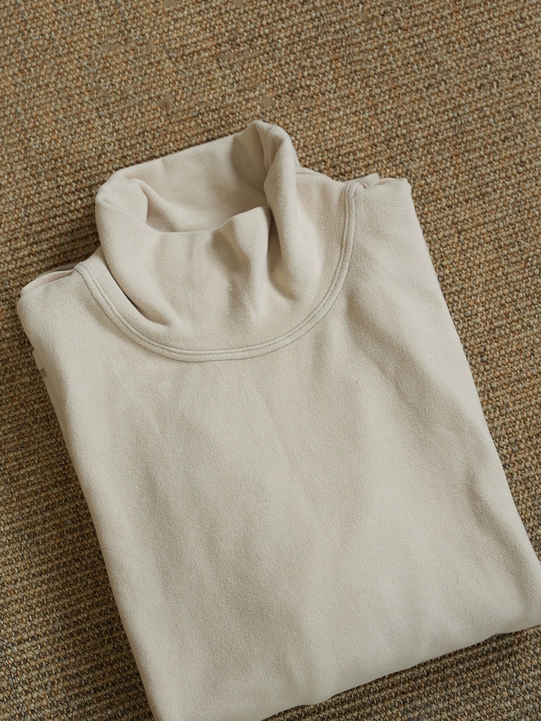 Women Autumn Retro Pure Color Turtleneck Blouse
