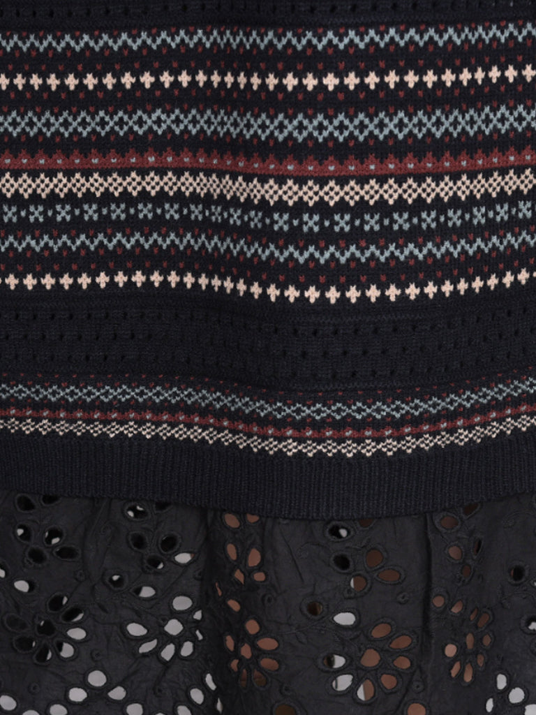 Women Autumn Artsy Stripe O-Neck Spliced Wool Dress