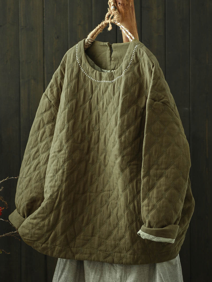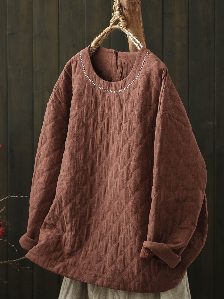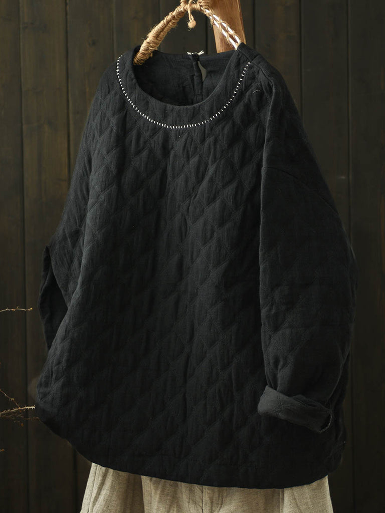 Women Autumn Casual Rhomboids O-Neck Padded Blouse
