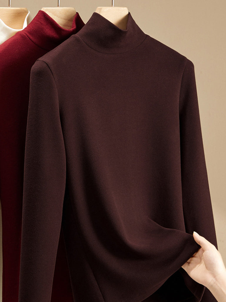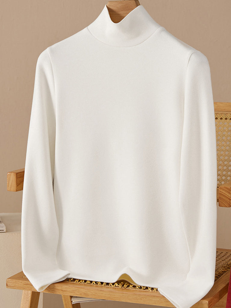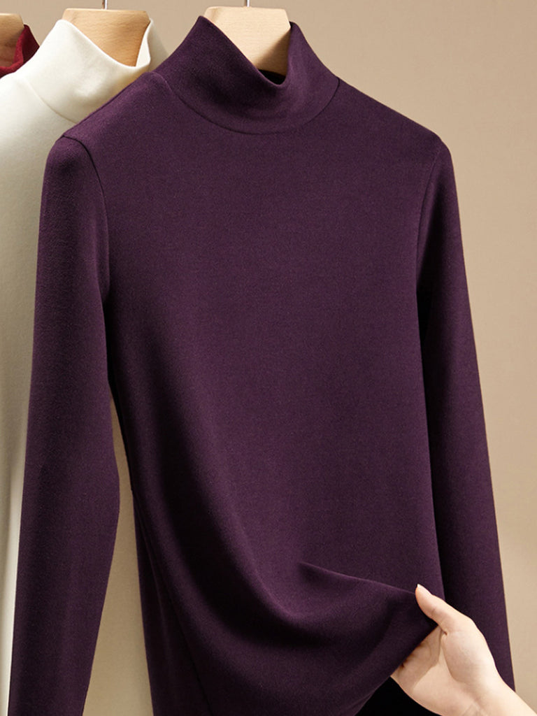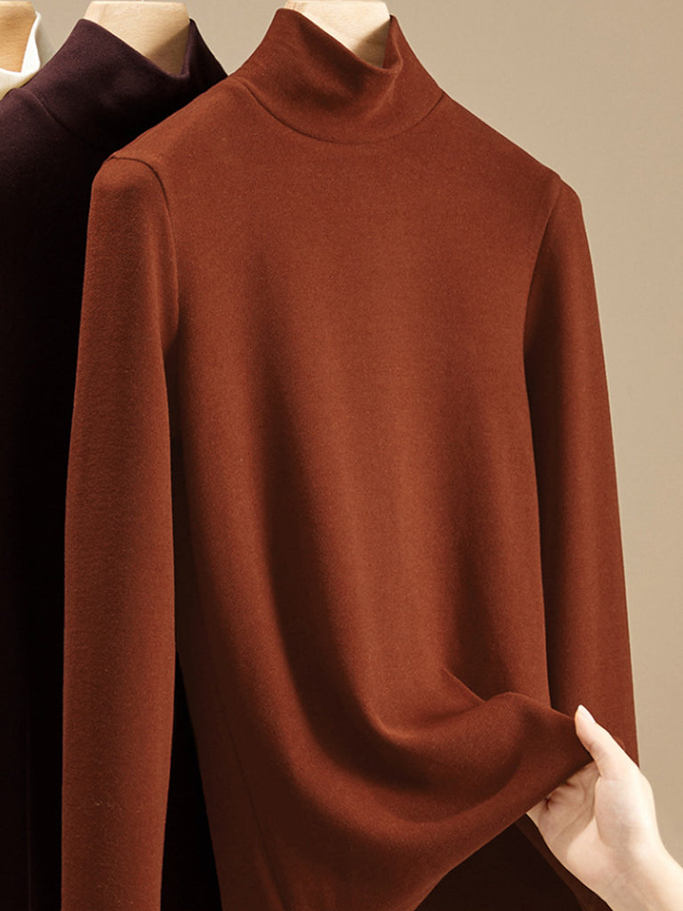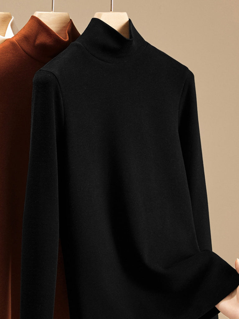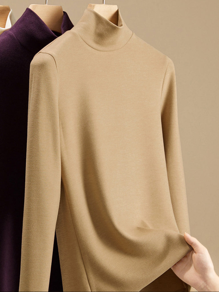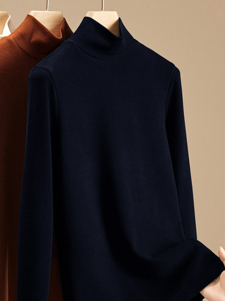 Women Autumn Pure Color Turtleneck Bottom Blouse
