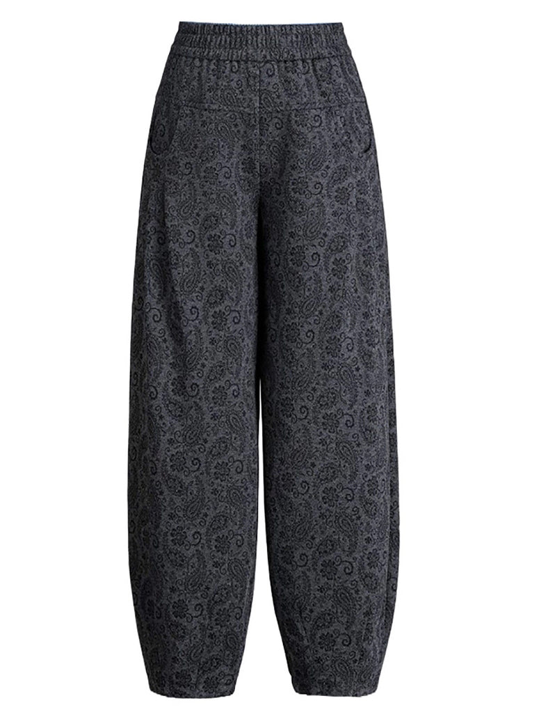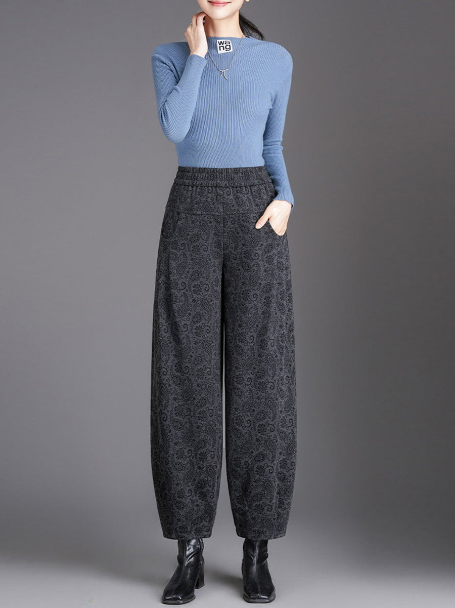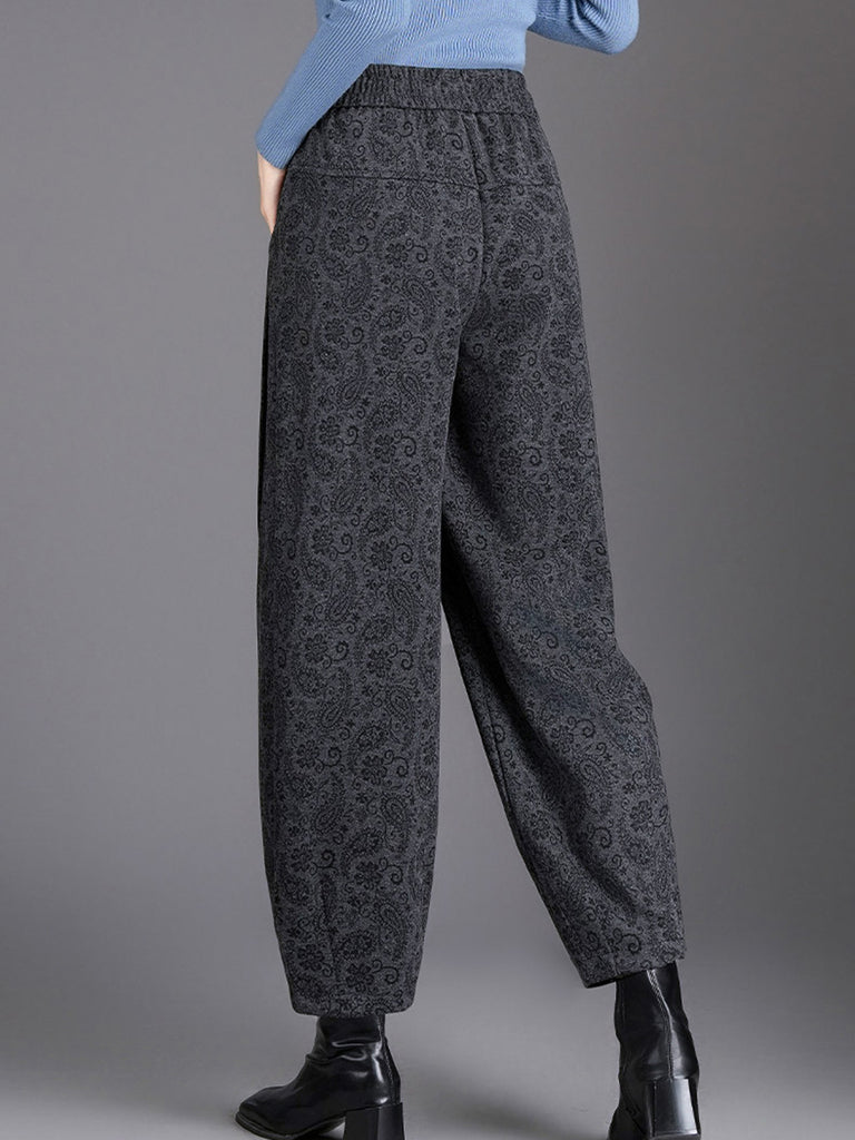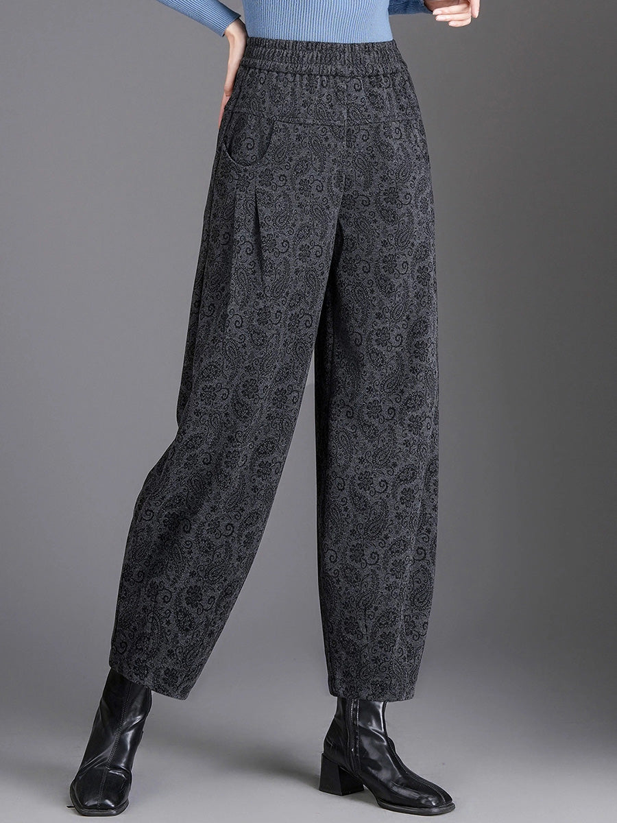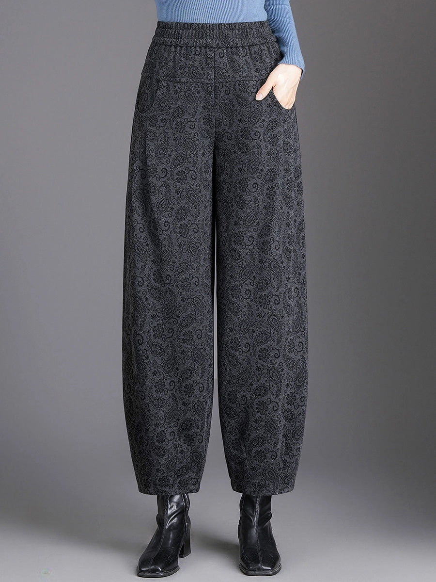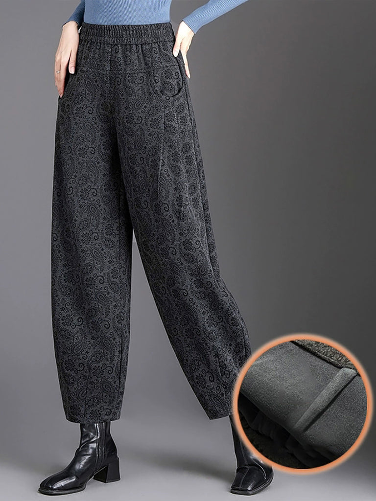 Women Winter Flower Fleece-lined Harem Pants