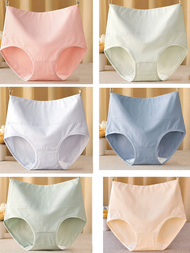 6 Pieces Women Pure Color High Waist Underwear