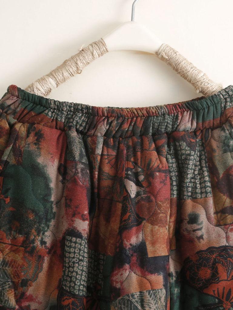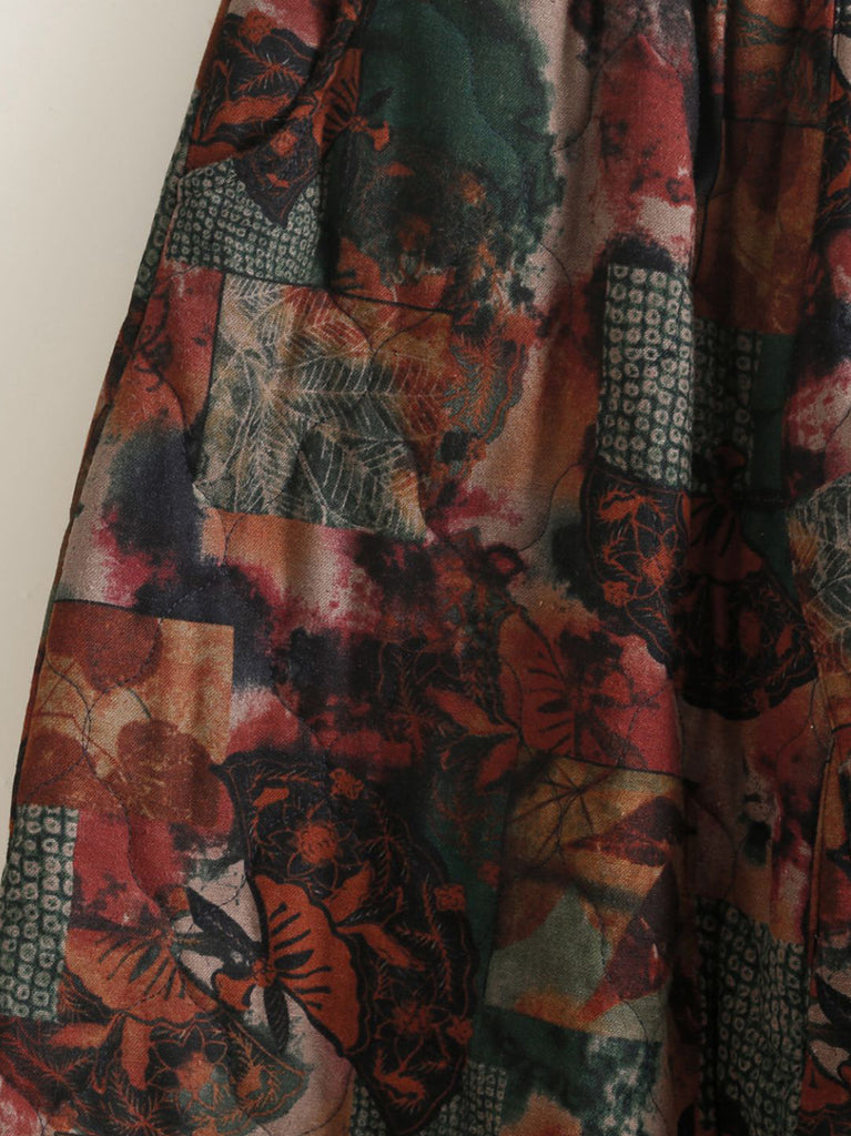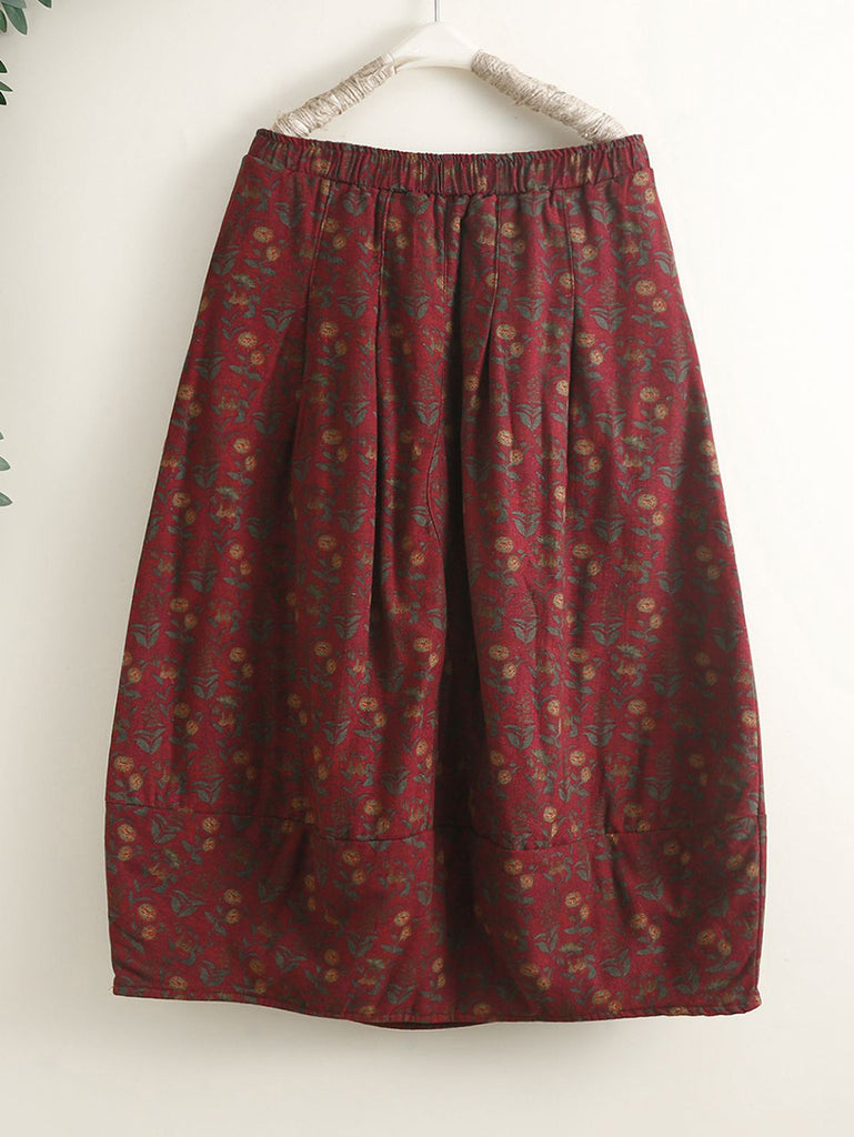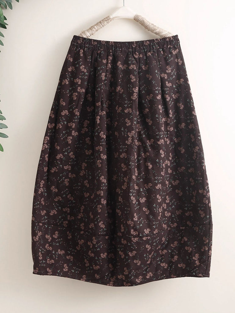 Women Autumn Retro Floral 100%Cotton Padded Bud Skirt