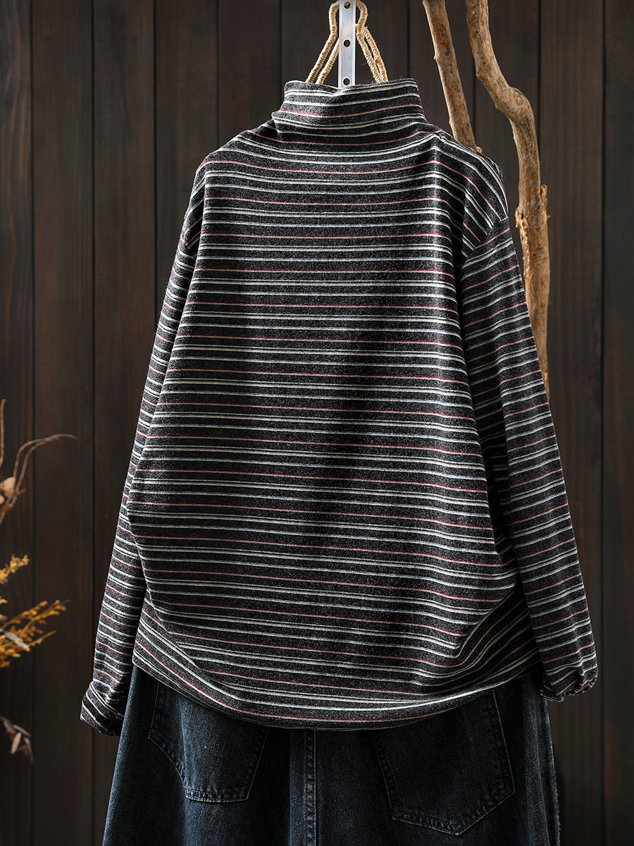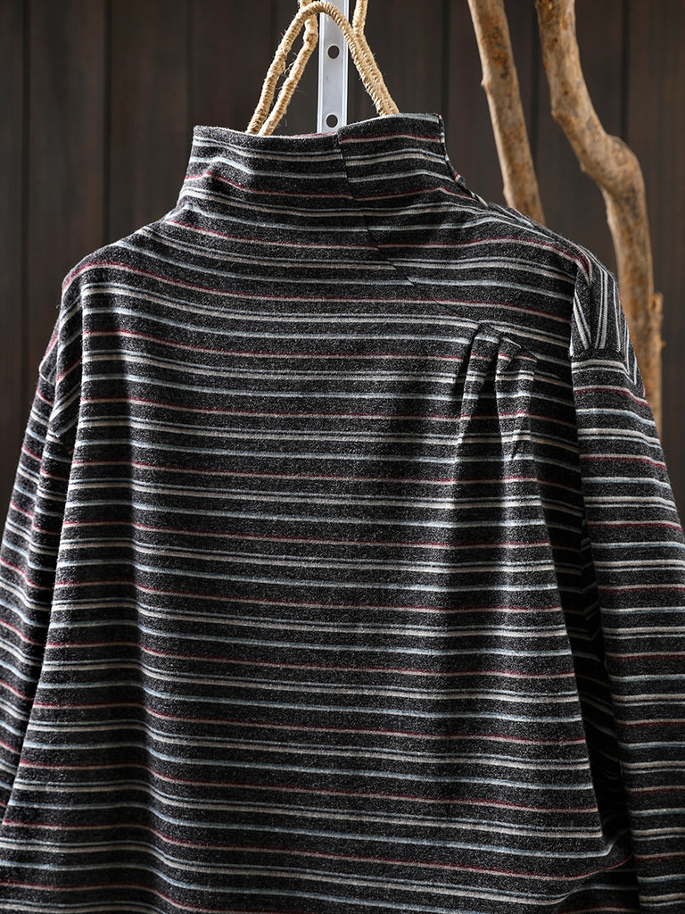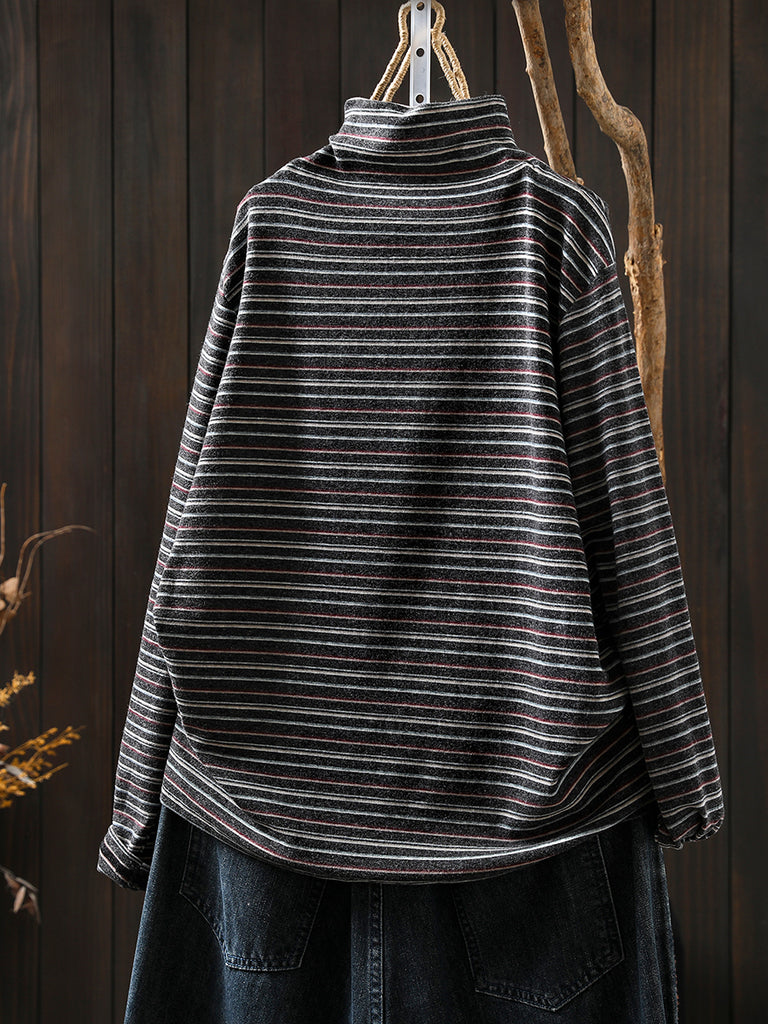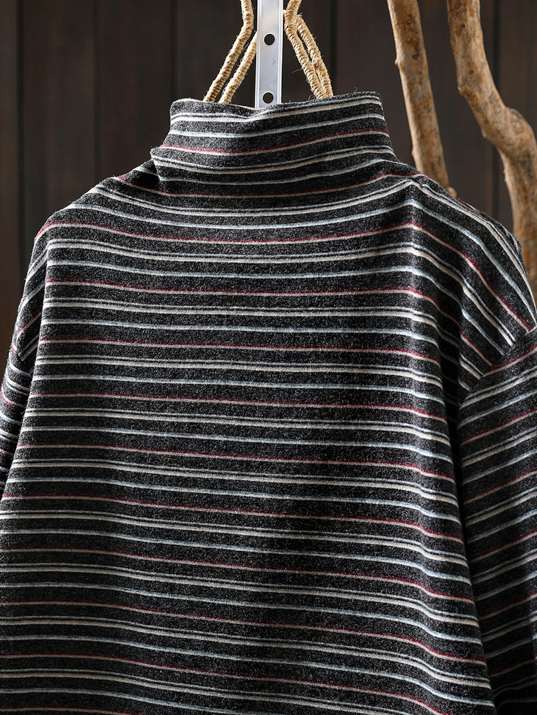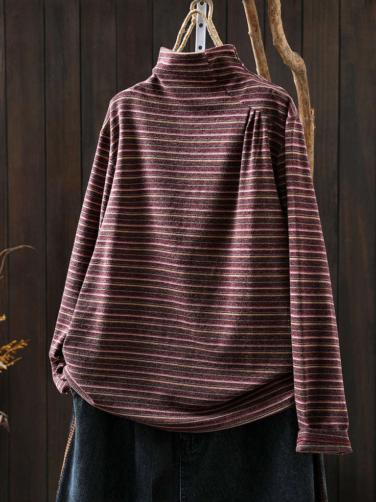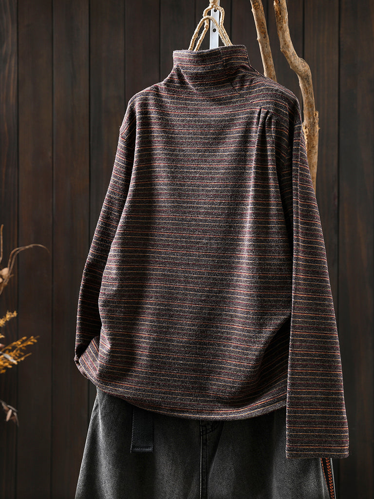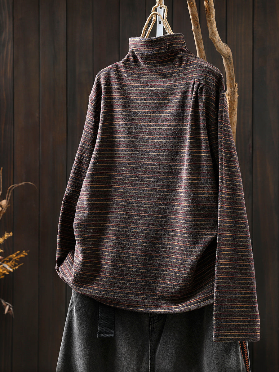Women Casual Autumn Stripe Wool Turtleneck Blouse