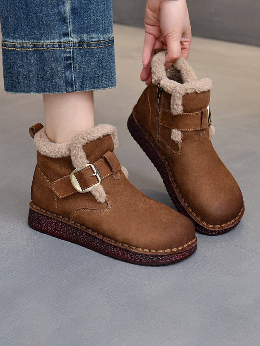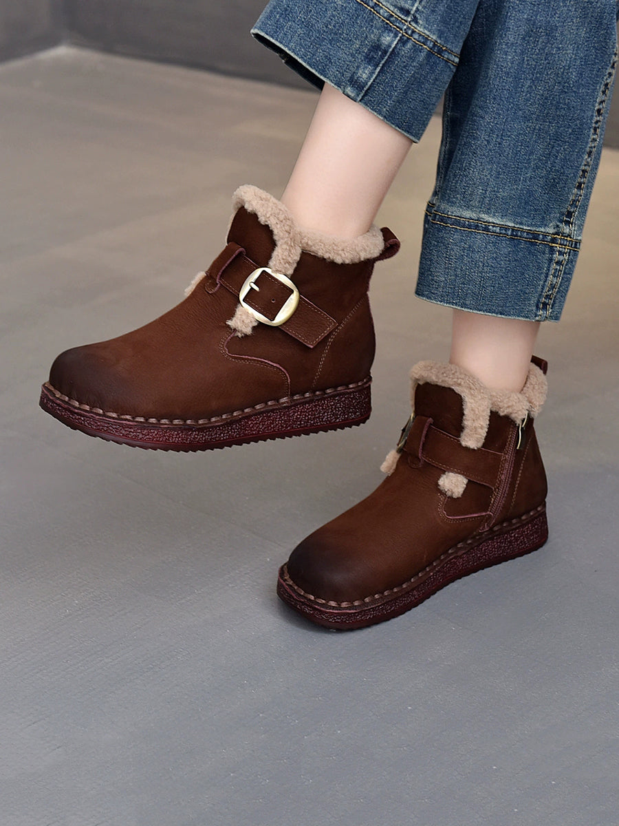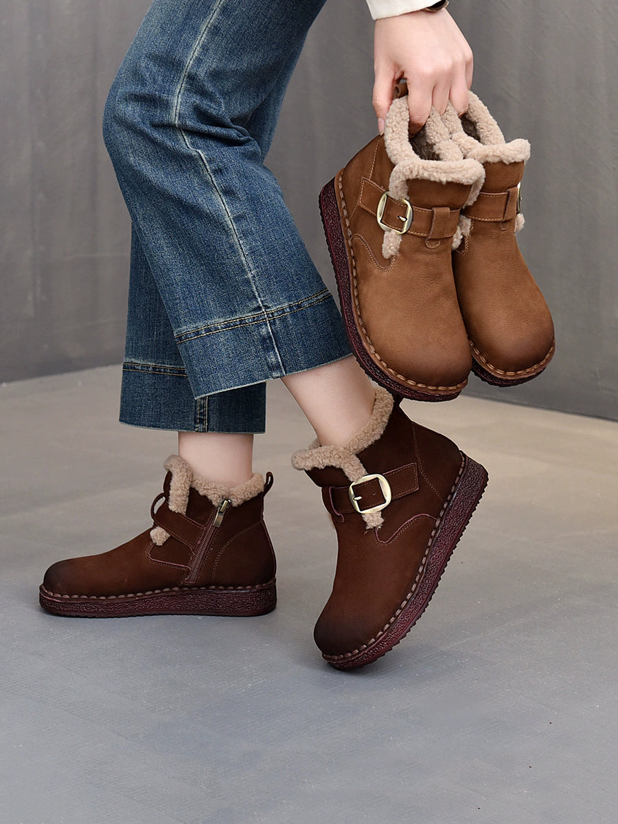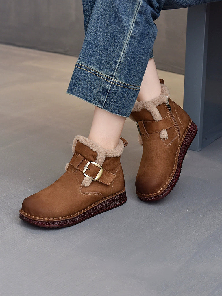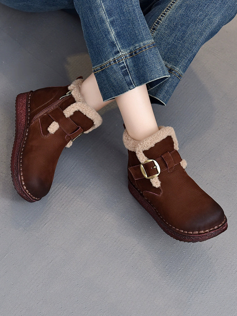 Women Vintage Genuine Leather Fleece-lined Ankle Boots