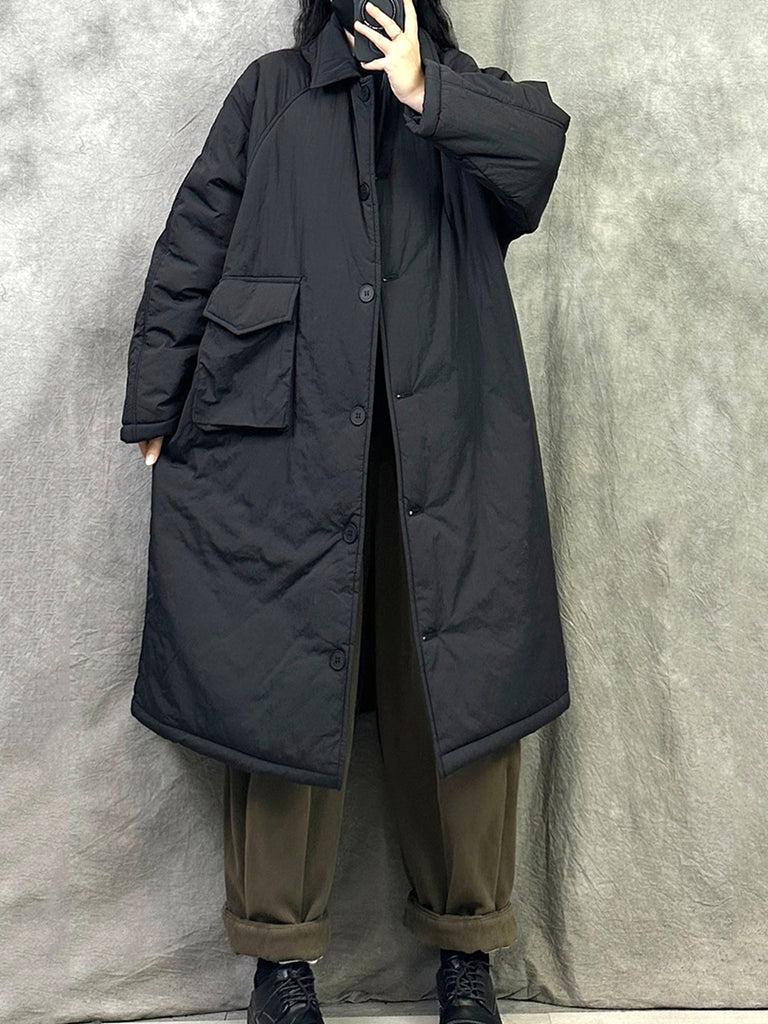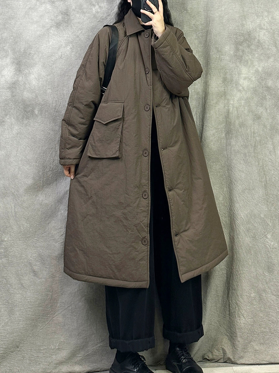 Women Winter Pure Color Turn-down Collar Padded Long Coat
