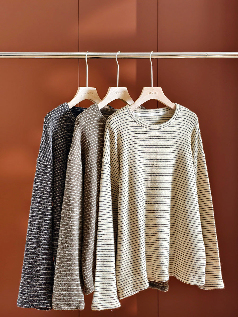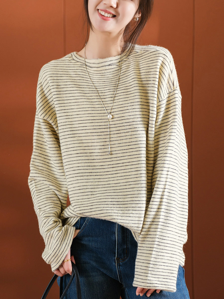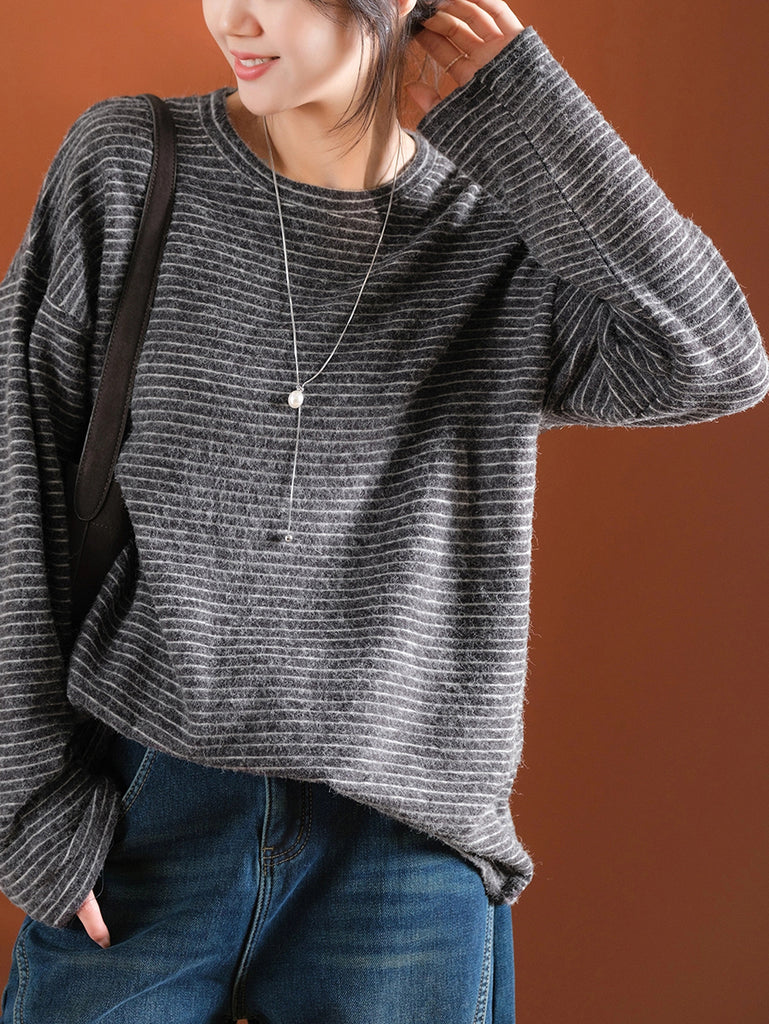 Crafted from a premium blend of 79% acrylic, 18% nylon, and 3% spandex, this vintage-inspired blouse delivers exceptional warmth and durability. The classic striped pattern pairs seamlessly with the relaxed O-neck silhouette, while raglan sleeves provide comfortable, unrestricted movement. Ideal for autumn and winter layering, this casual piece combines timeless style with practical construction for everyday wear.