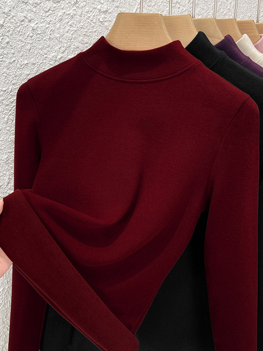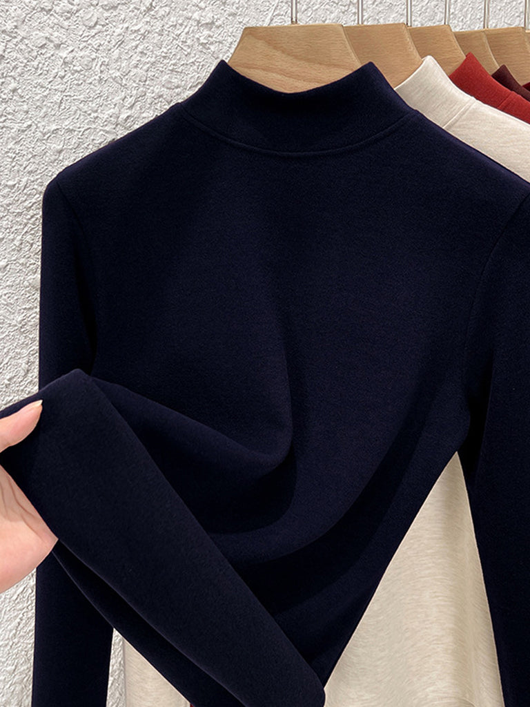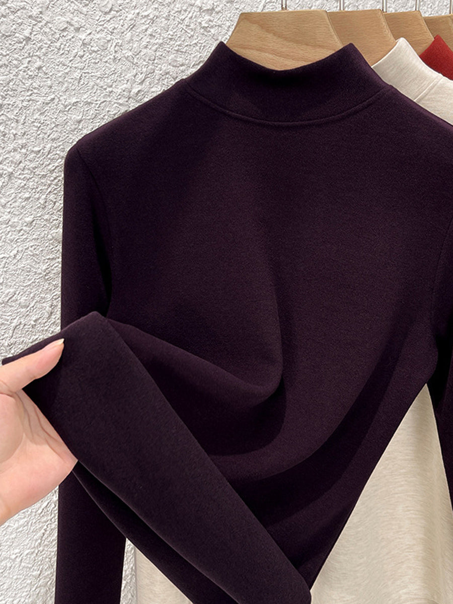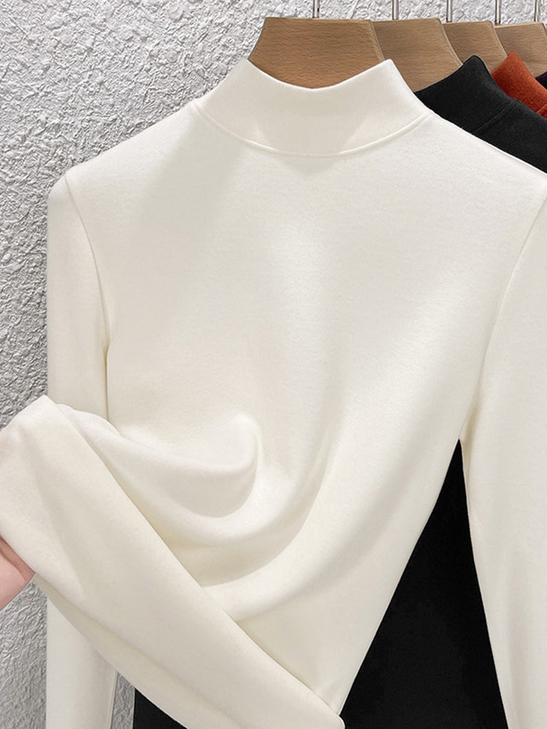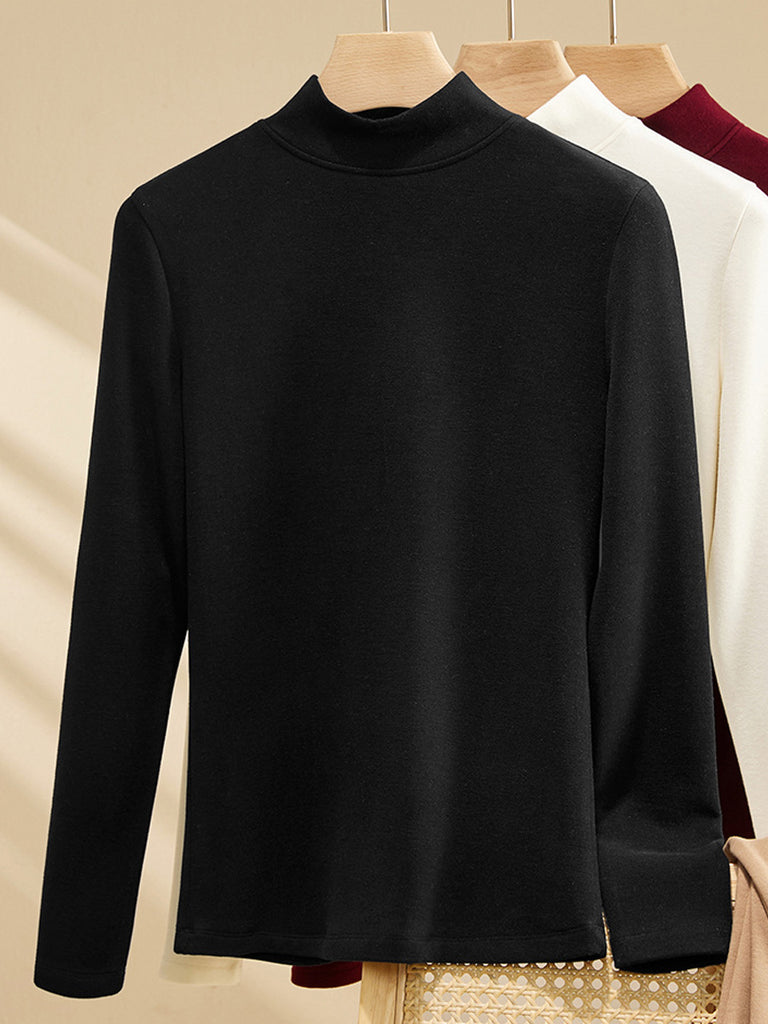 Women Winter Pure Color Half-Turtleneck Bottom Blouse