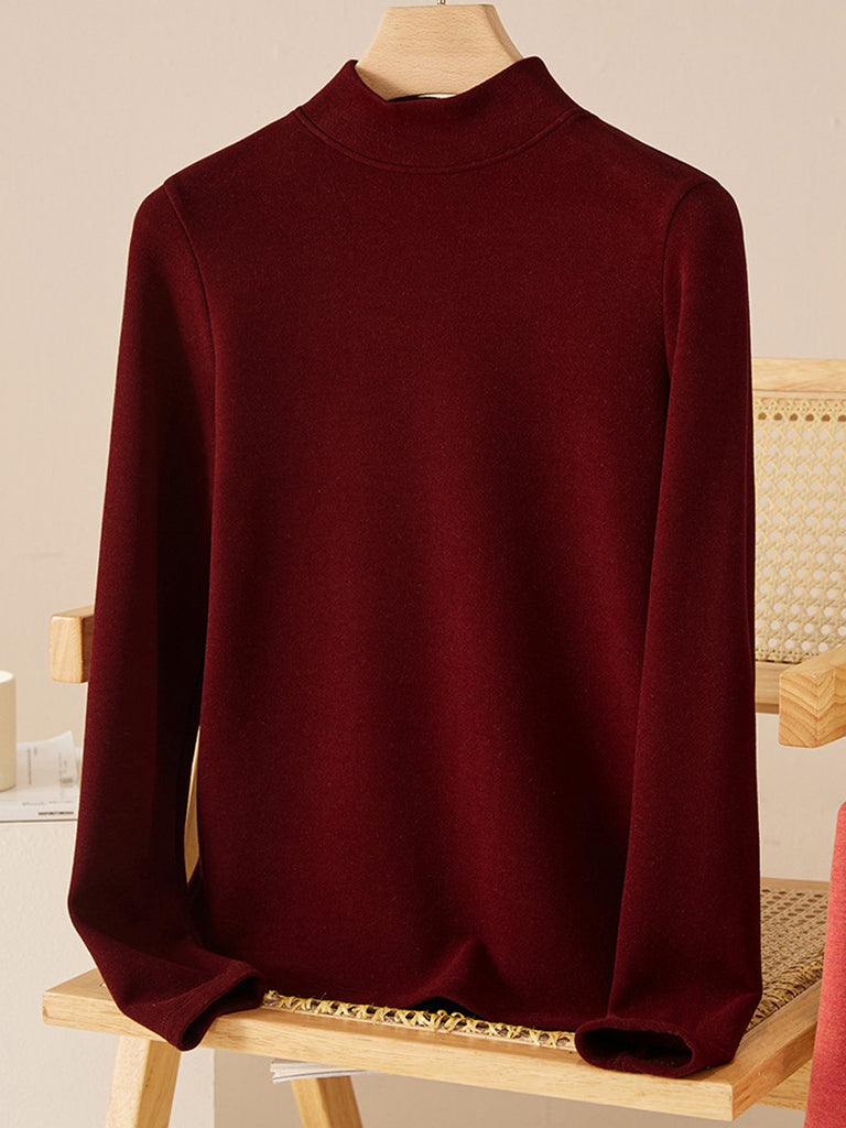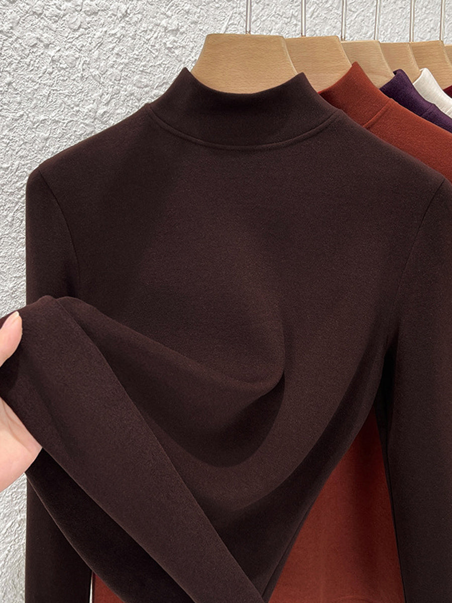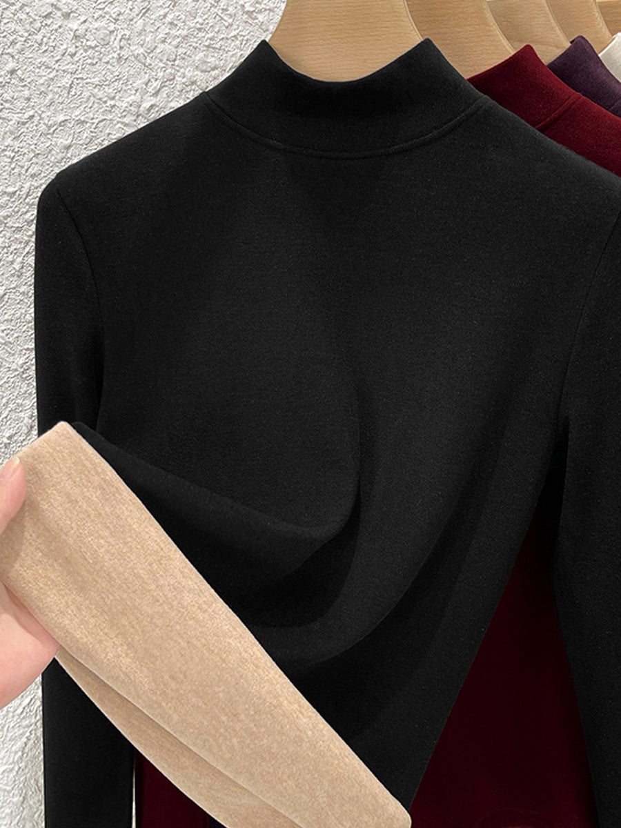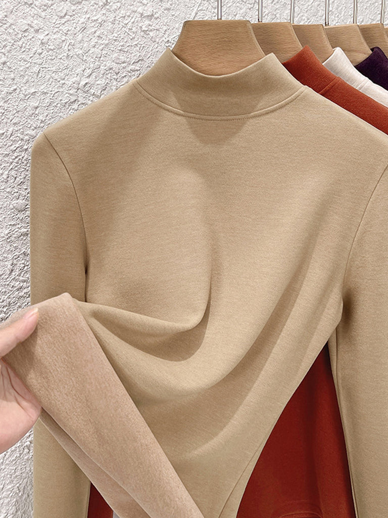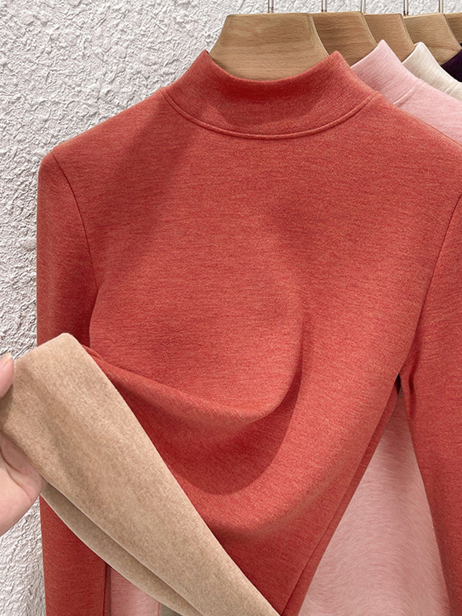 Women Winter Pure Color Half-Turtleneck Bottom Blouse