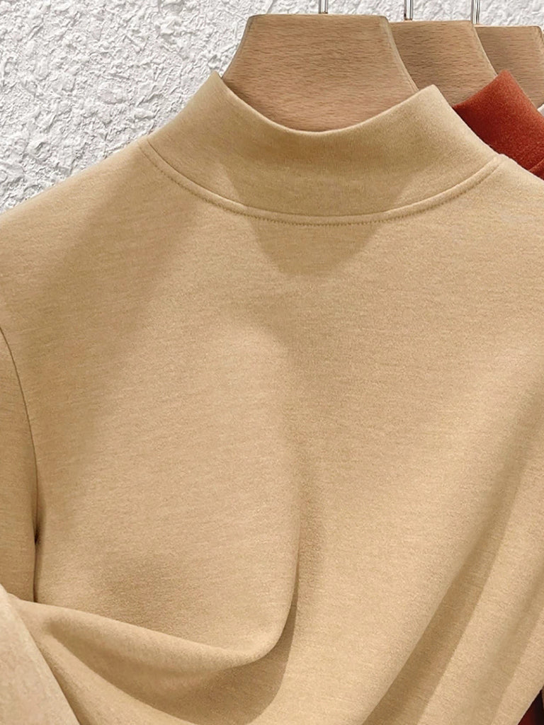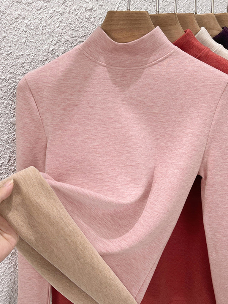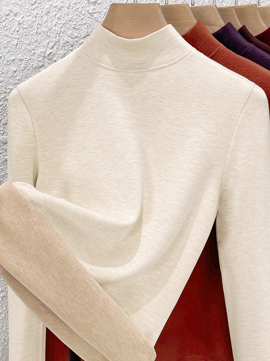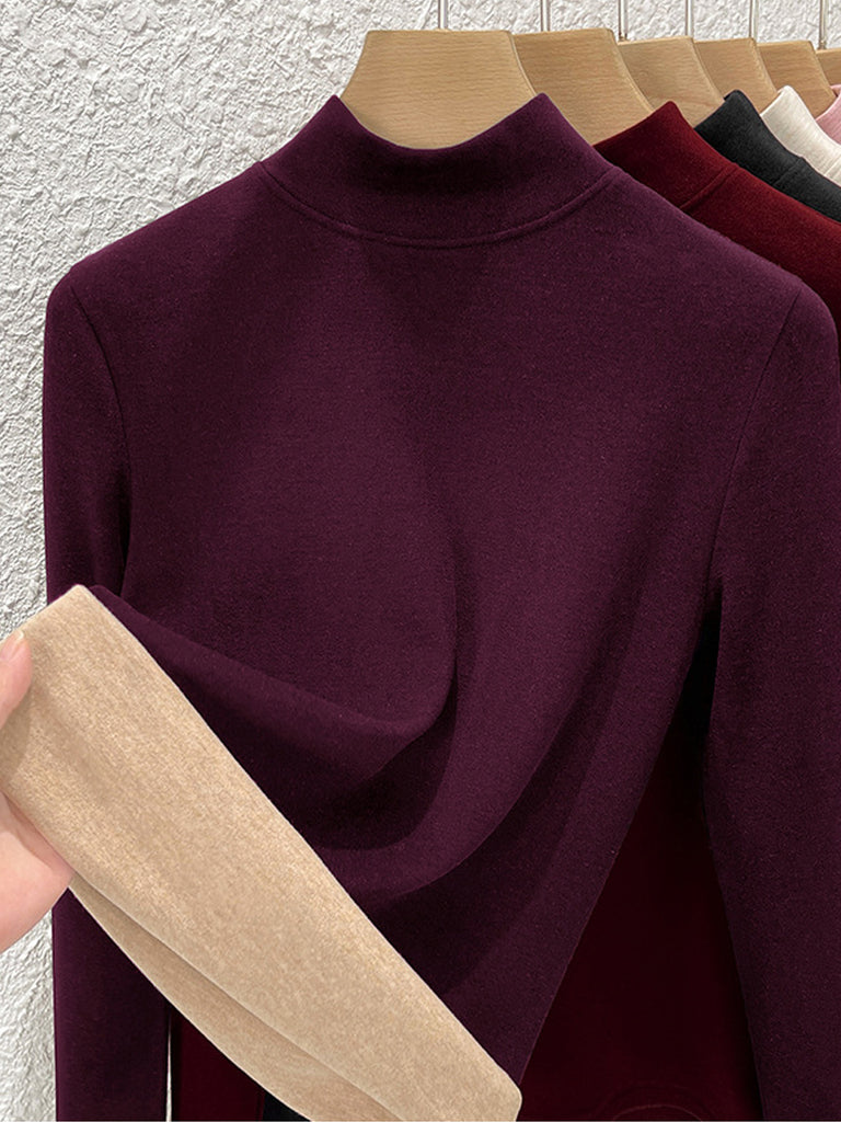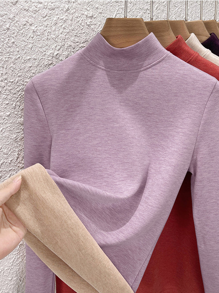 Women Winter Pure Color Half-Turtleneck Bottom Blouse