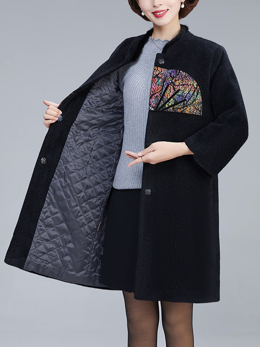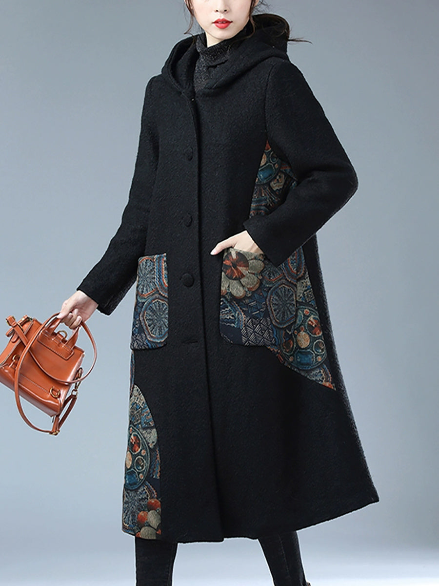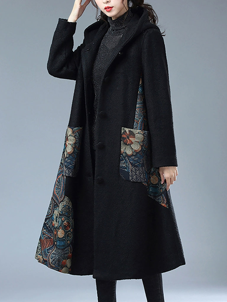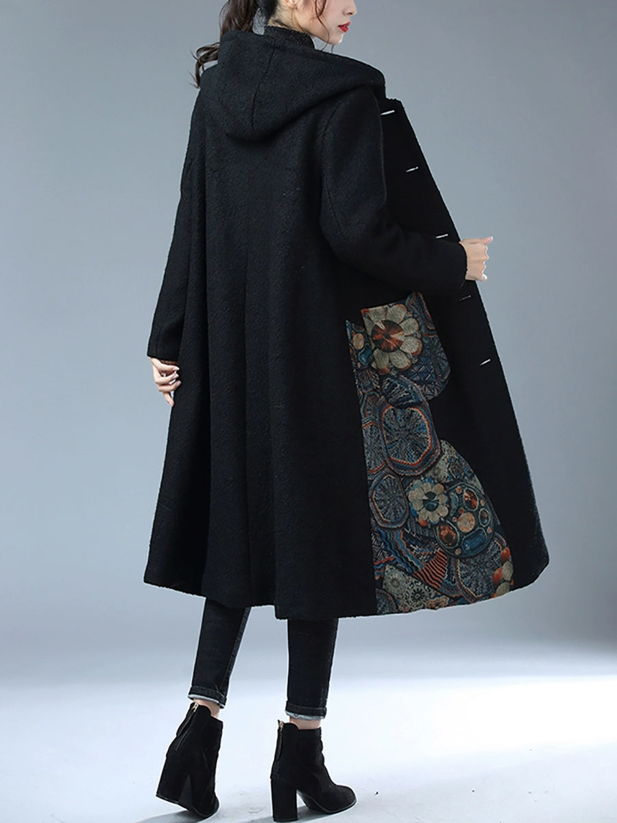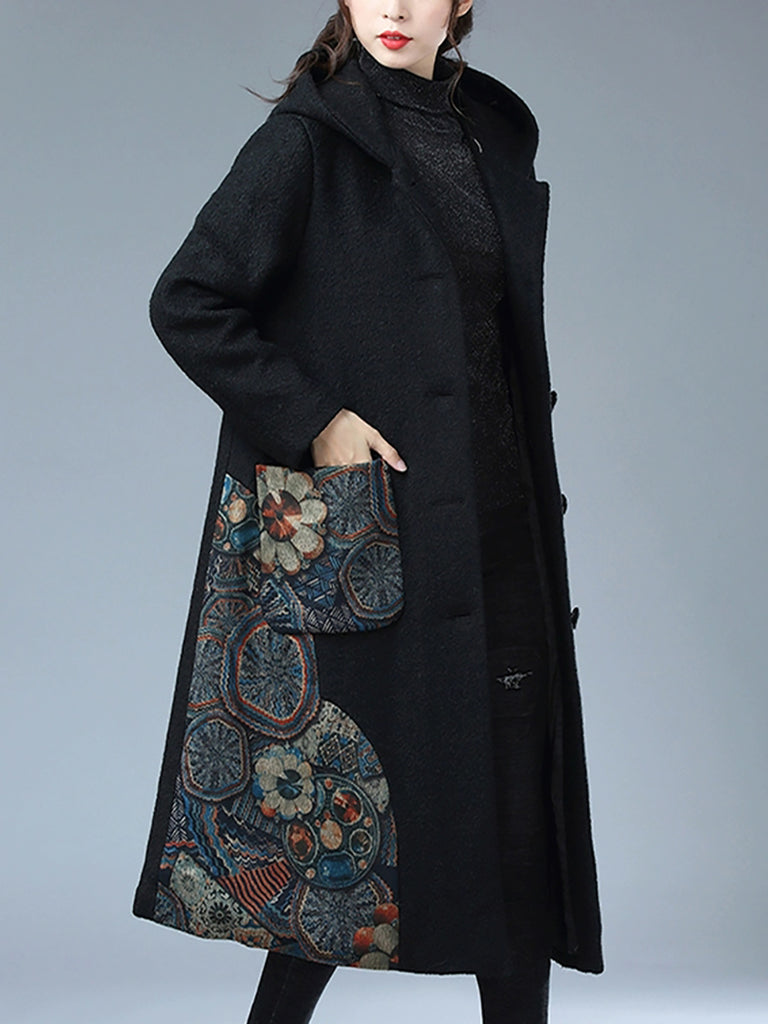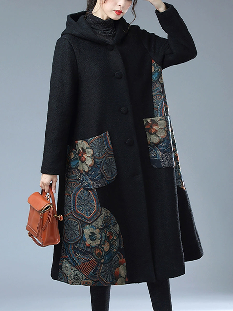 Women Winter Vintage Flower Patch Padded Hooded Coat