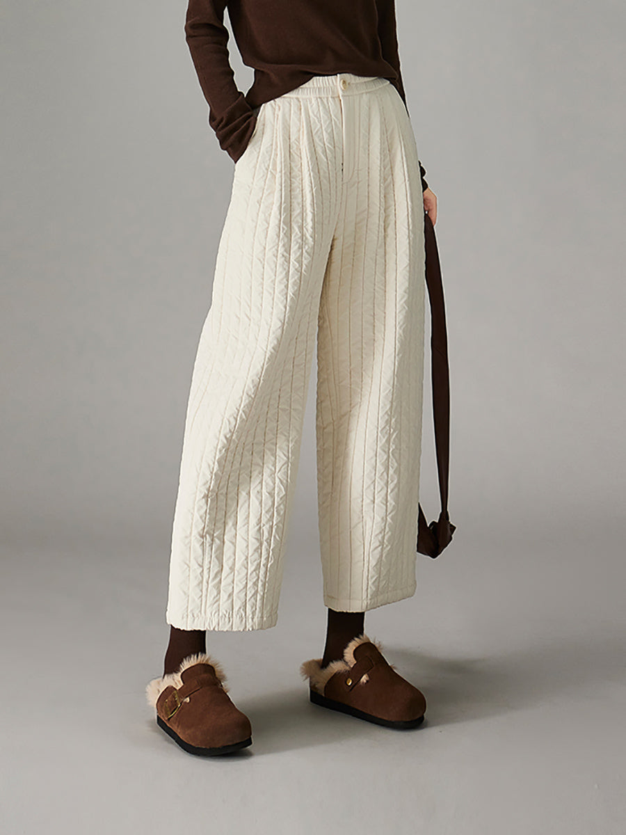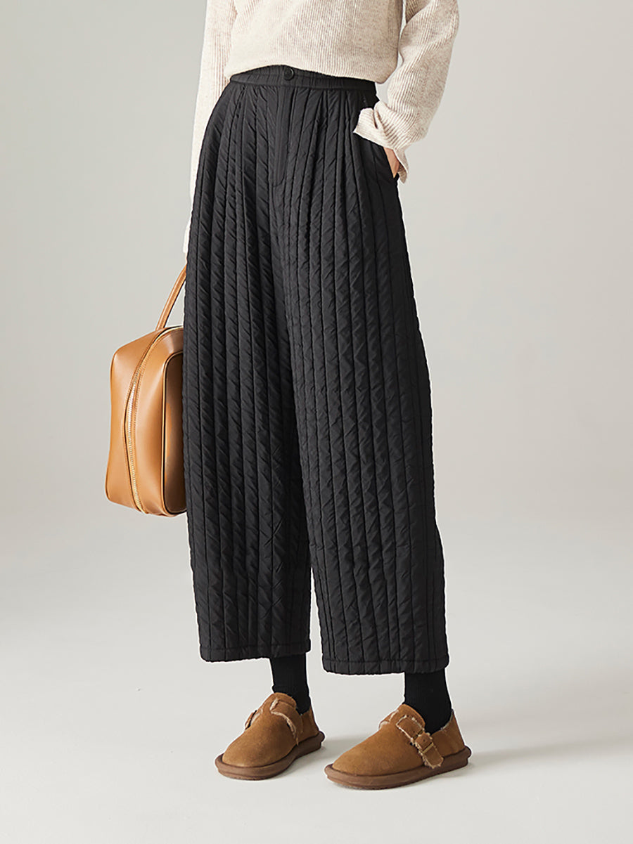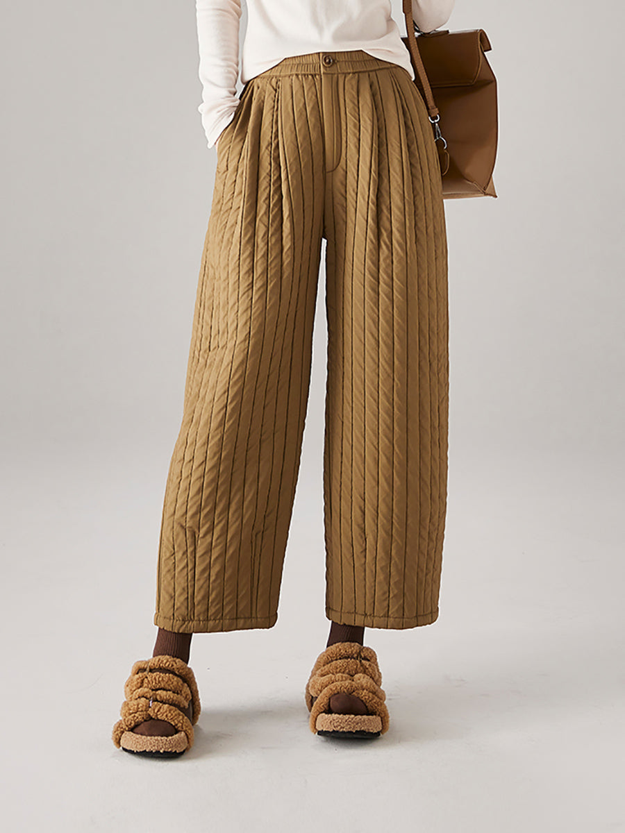 Women Winter Casual Pure Color Padded Wide-leg Pants