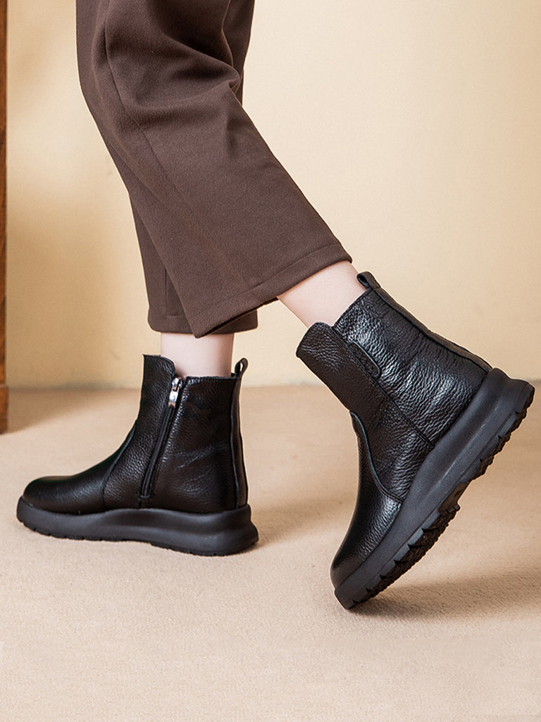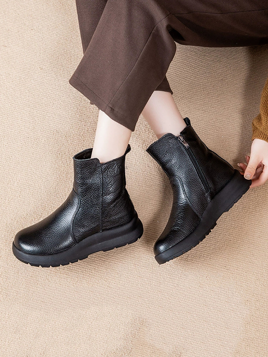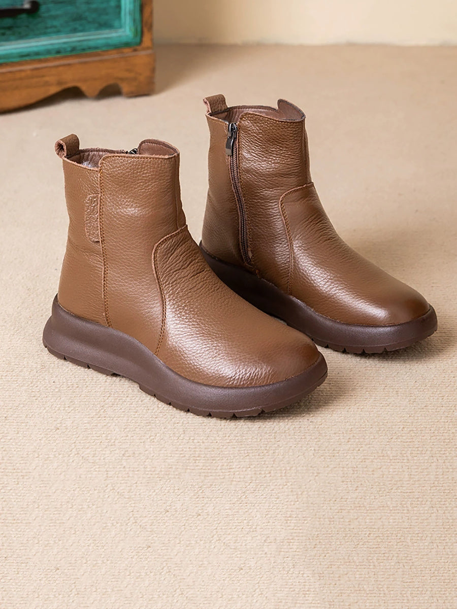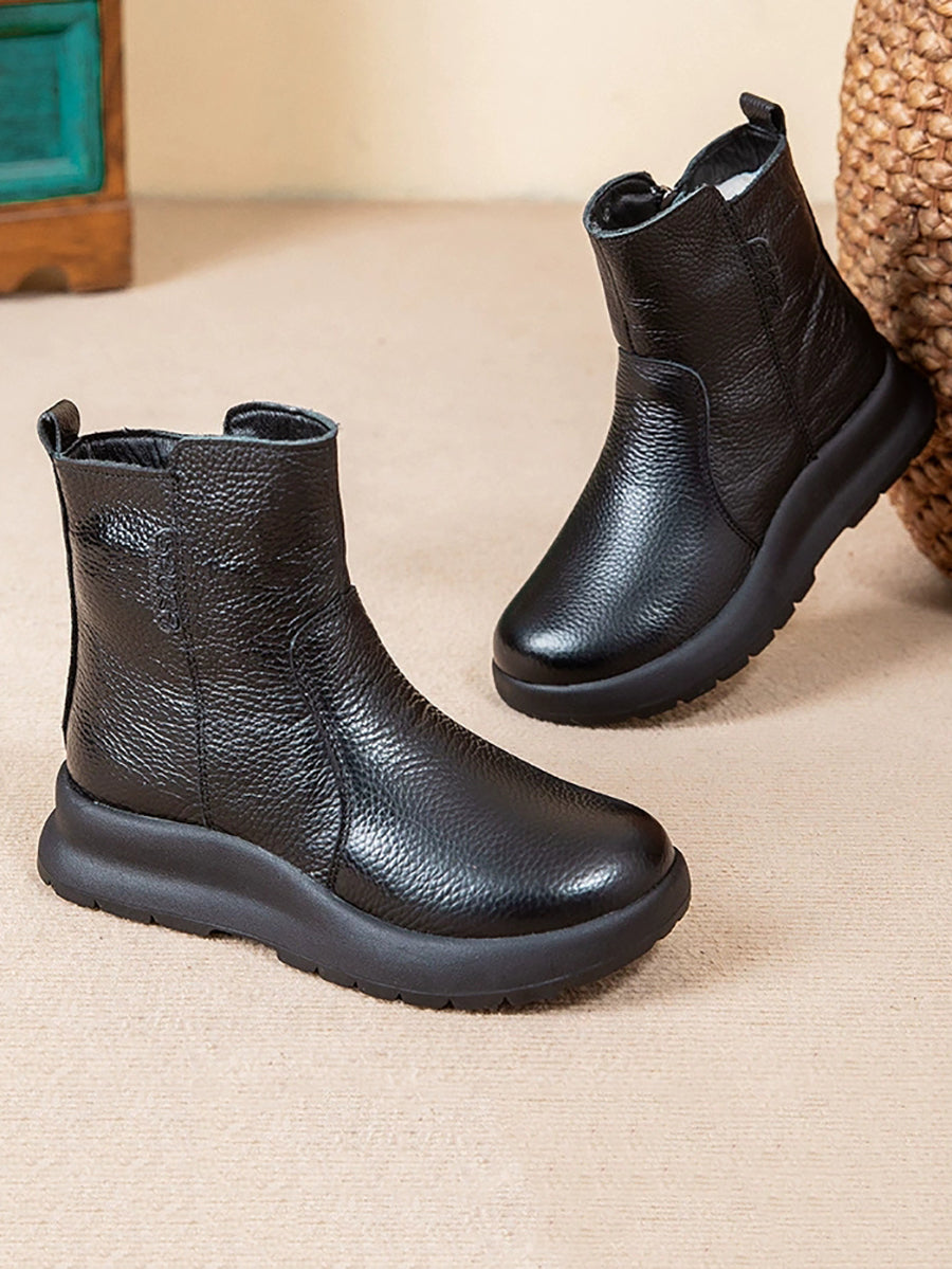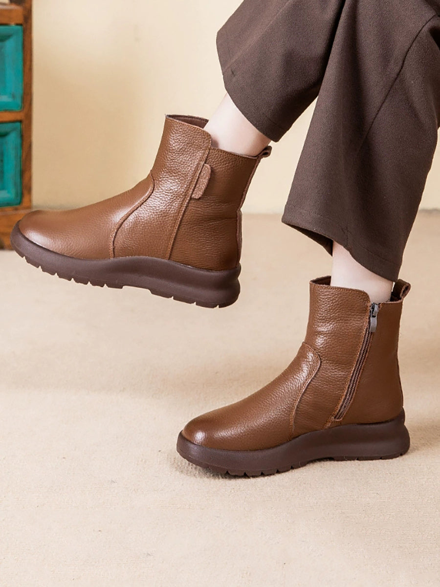Women Winter Genuine Leather Fleece-lined Boots
