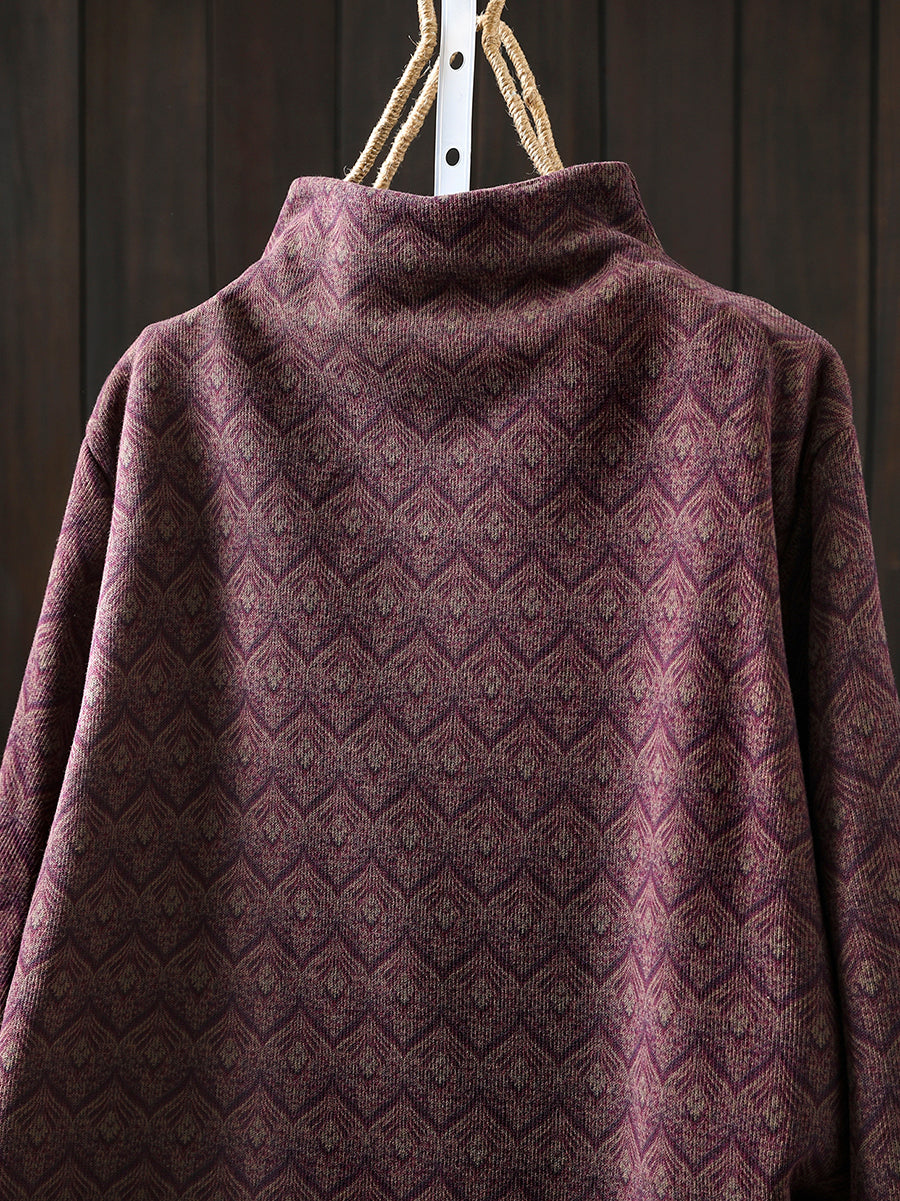 Crafted from premium 85% cotton, this vintage-inspired blouse delivers timeless sophistication with its classic striped pattern and refined half-turtleneck collar. The full-length regular sleeves provide elegant coverage while maintaining a retro aesthetic that effortlessly transitions between autumn and winter seasons. A wardrobe essential that combines comfort with enduring style.