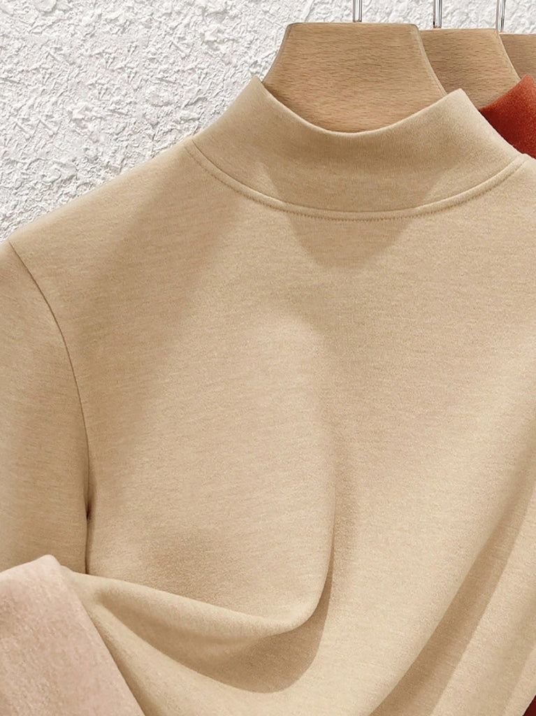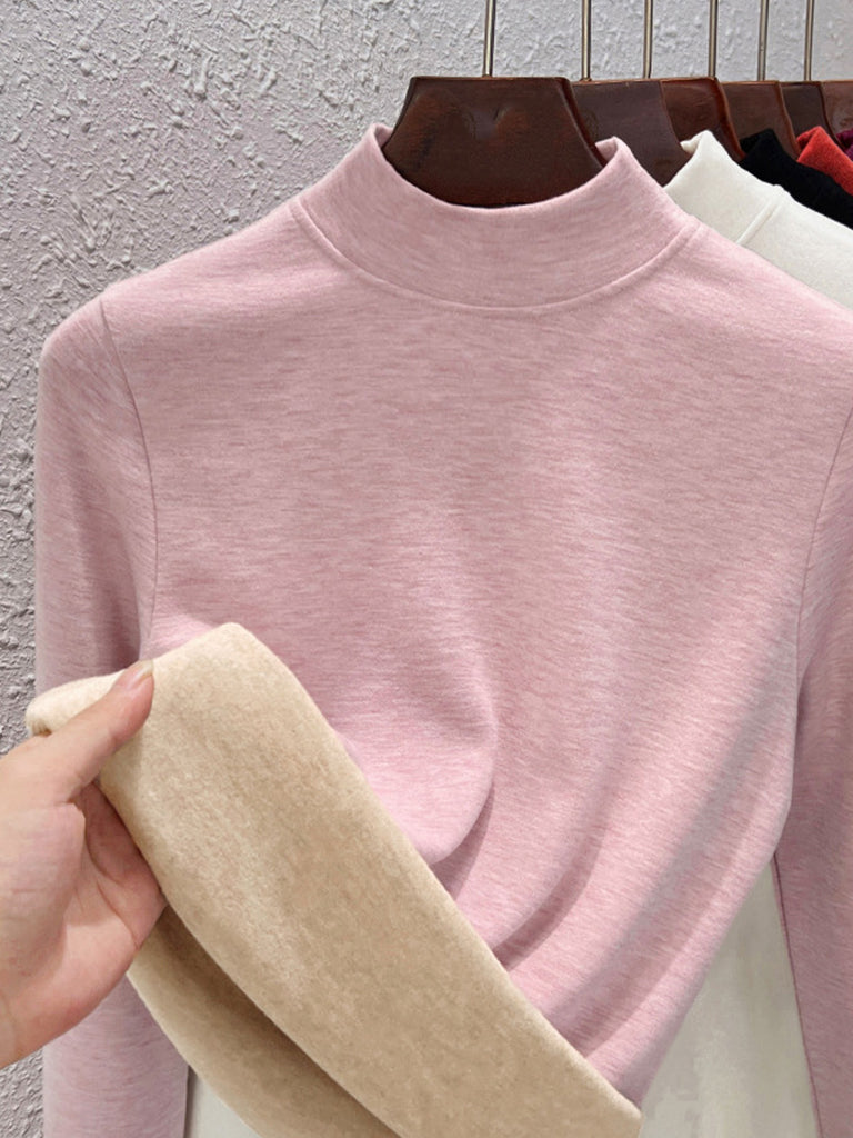 Women Autumn Casual Fleece-lined Half-Turtleneck Base Blouse