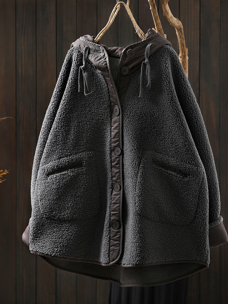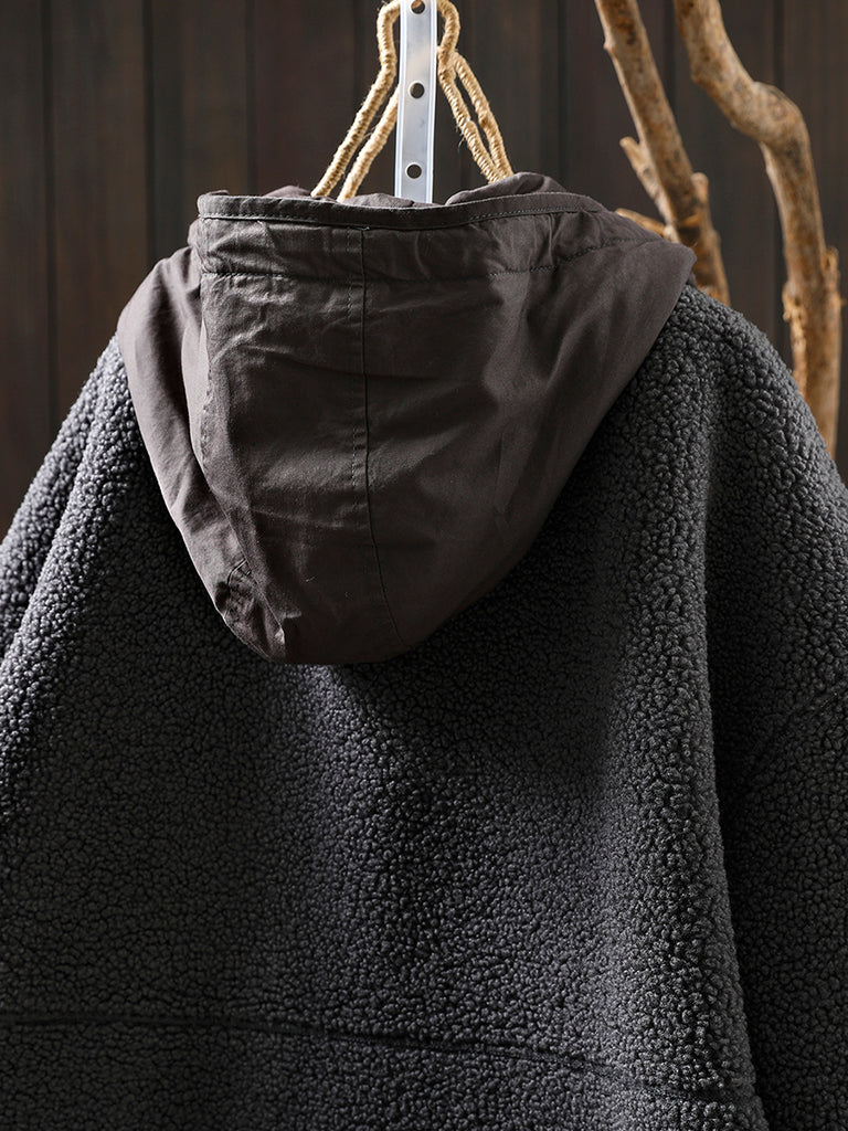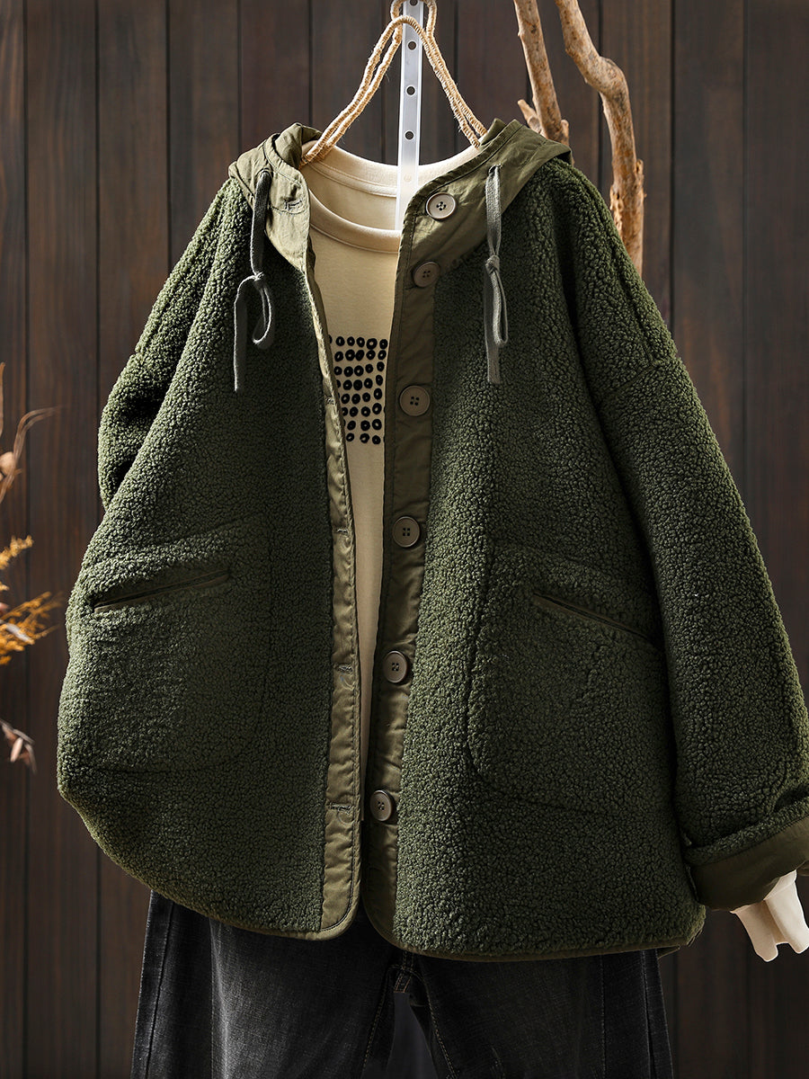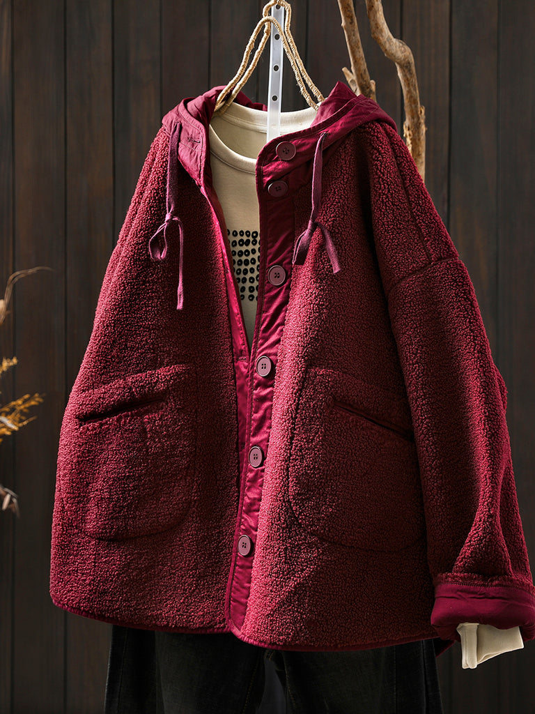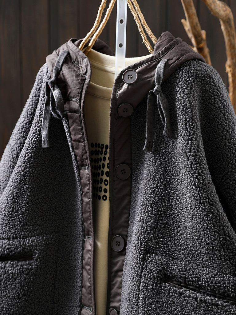 Women Winter Casual Pure Color Fleece Hooded Coat