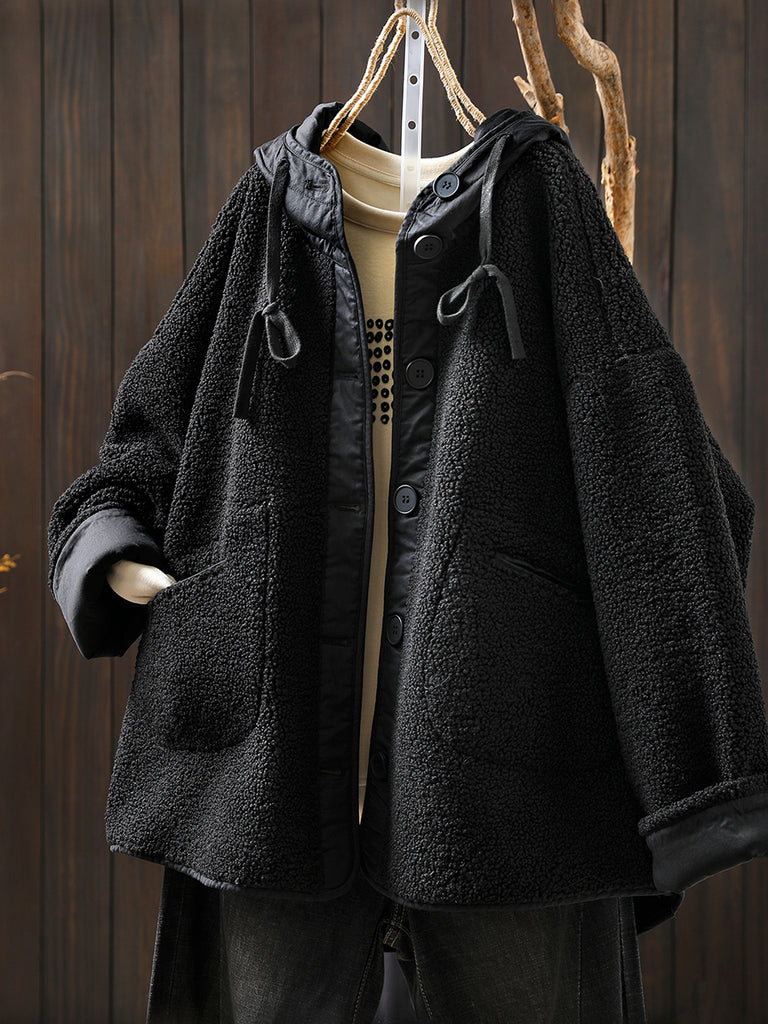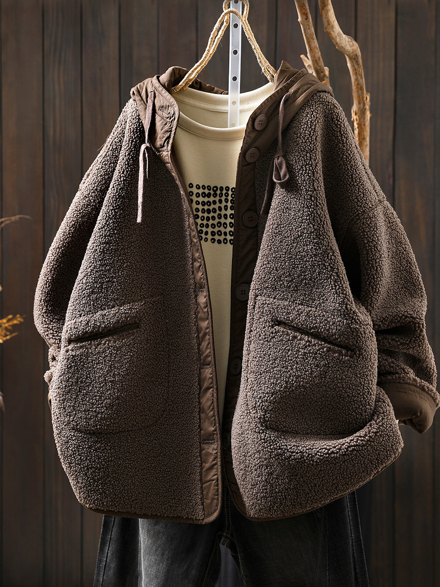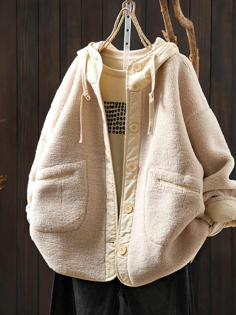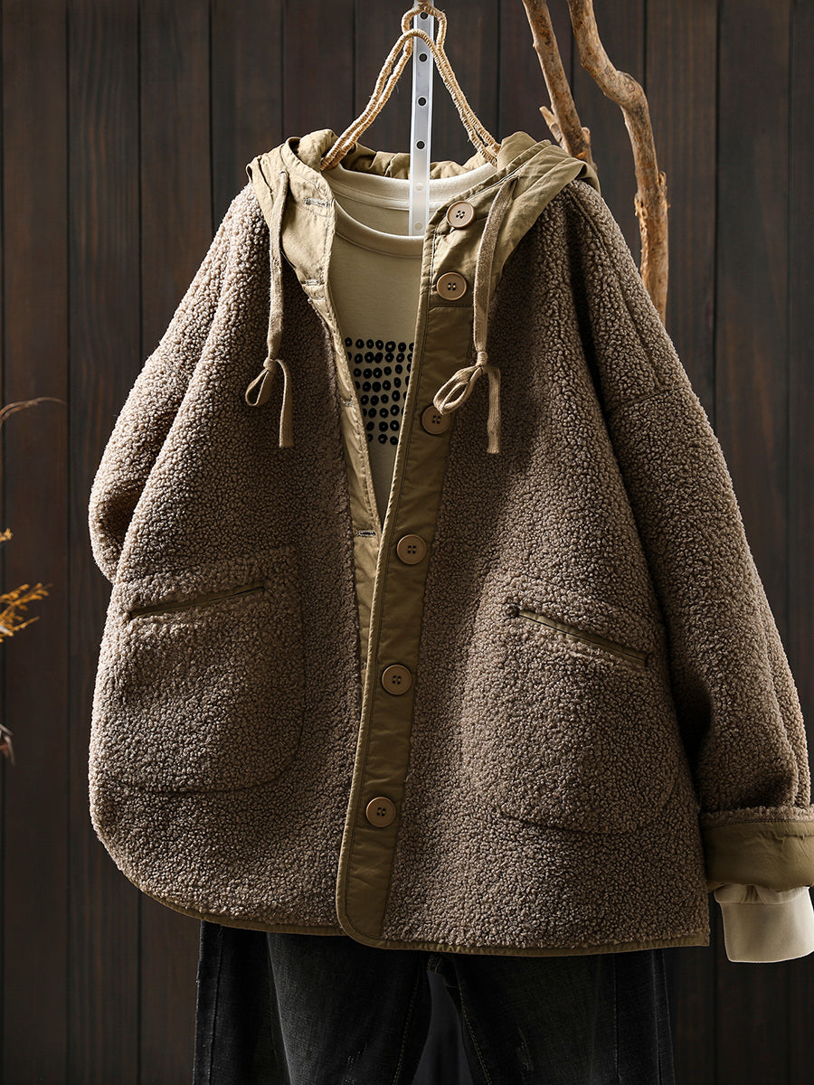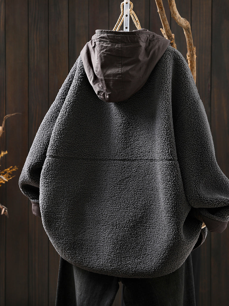 Women Winter Casual Pure Color Fleece Hooded Coat