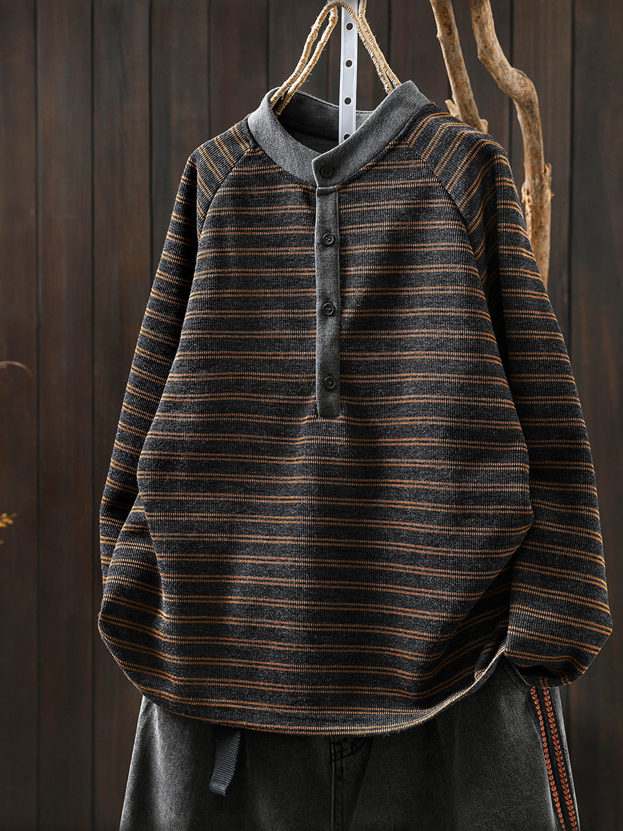 Women Autumn Retro Stripe O-Neck Blouse