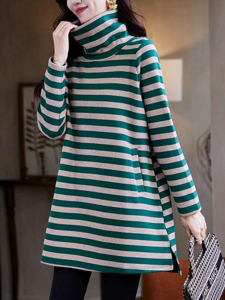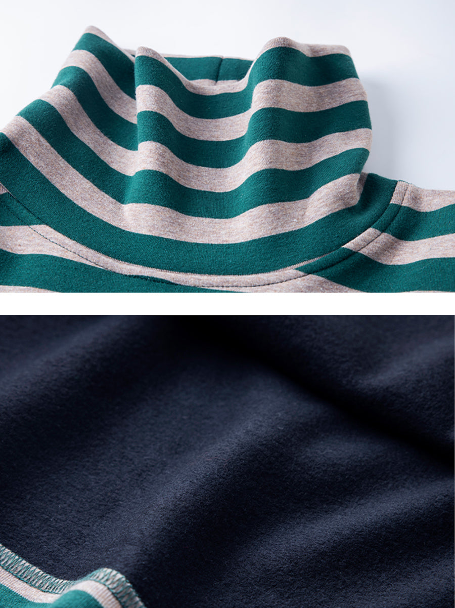 Crafted from a premium blend of 62.5% cotton, 33.5% polyester, and 4% spandex, this winter essential delivers both comfort and durability. The classic stripe pattern pairs seamlessly with a refined turtleneck collar, while full-length regular sleeves provide complete coverage. Designed with a relaxed casual aesthetic, it transitions effortlessly from autumn through winter, making it a versatile addition to any seasonal wardrobe.