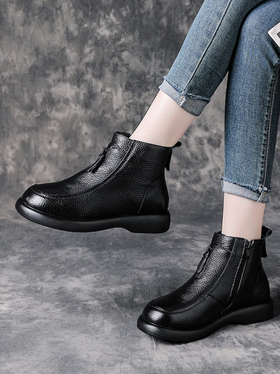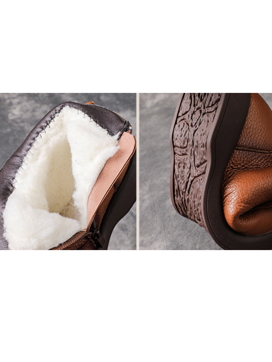 Women Winter Genuine Leather Fleece-lined Ankle Boots