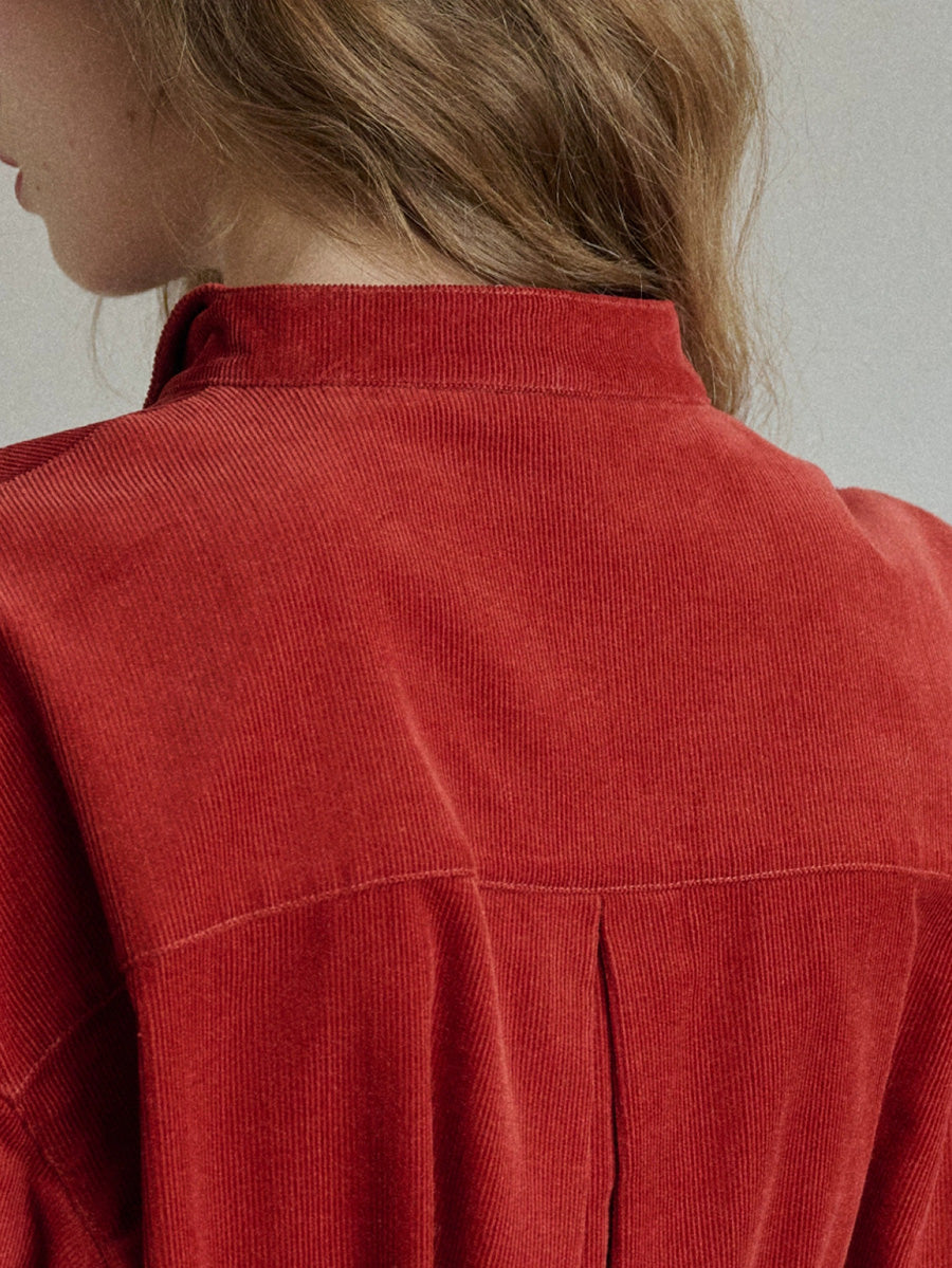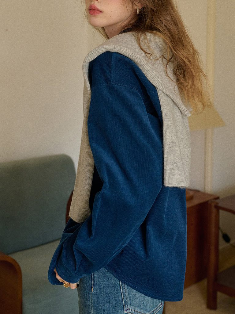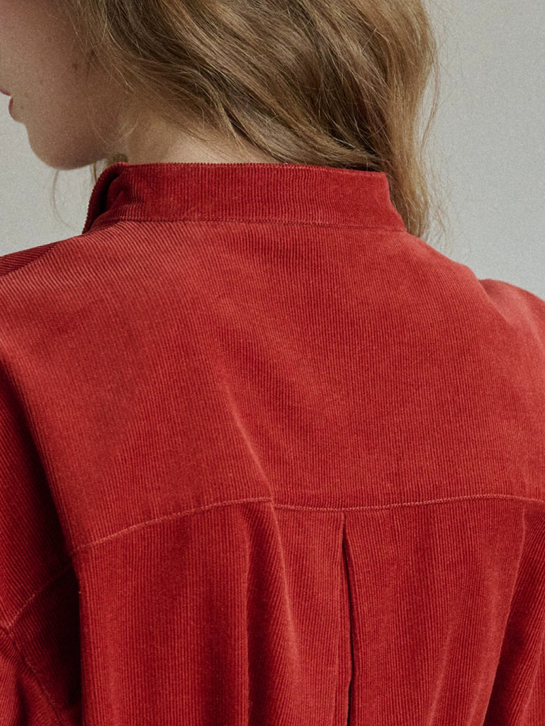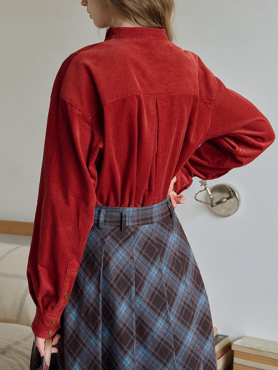 Women Artsy Winter Pure Color 100%Cotton Shirred Shirt