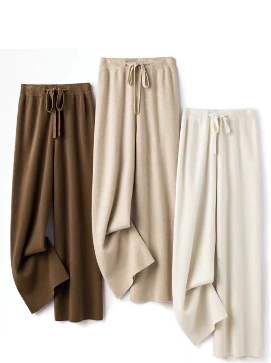 Women Winter Pure Color Knitted Wool Wide-leg Pants