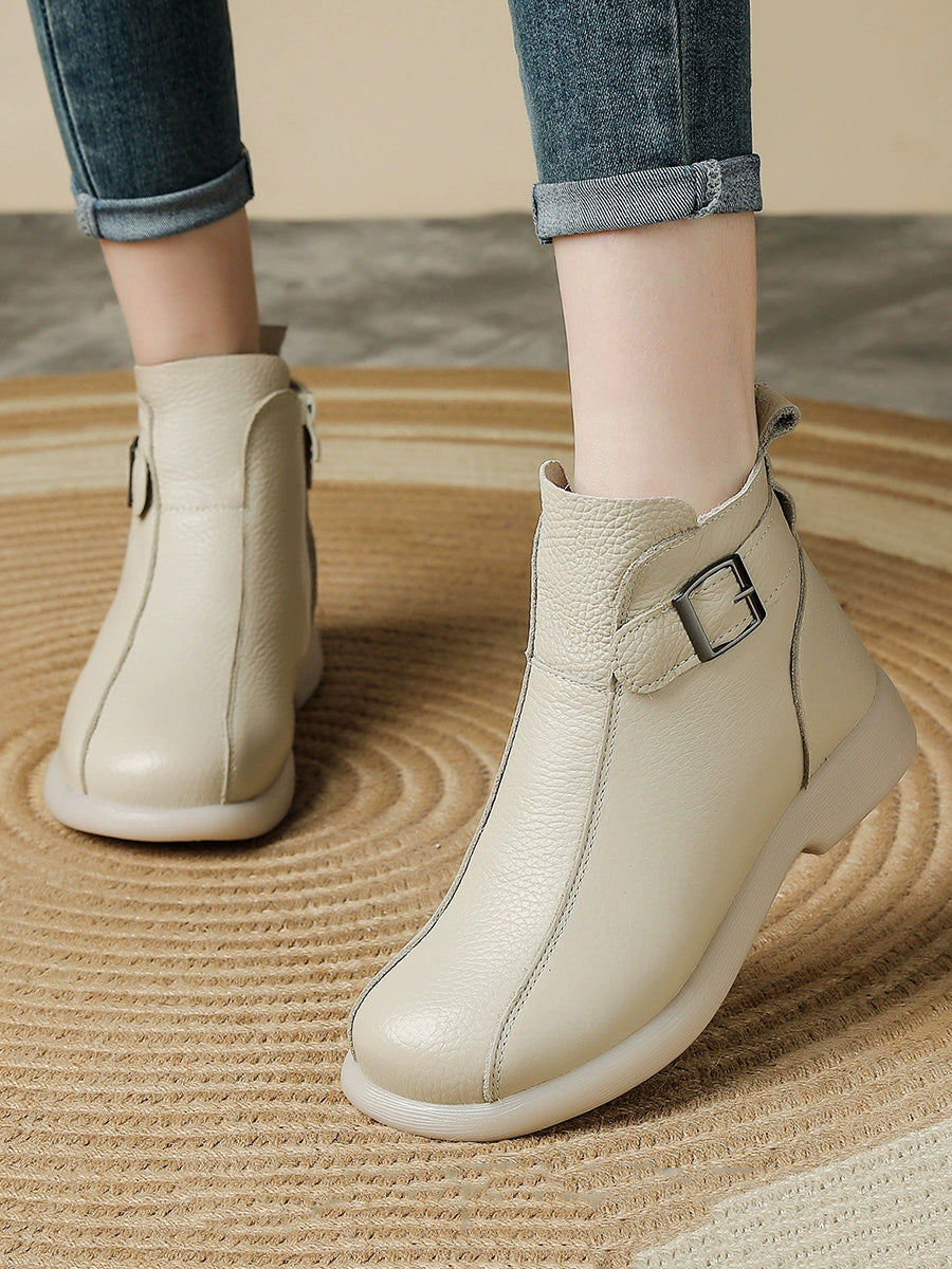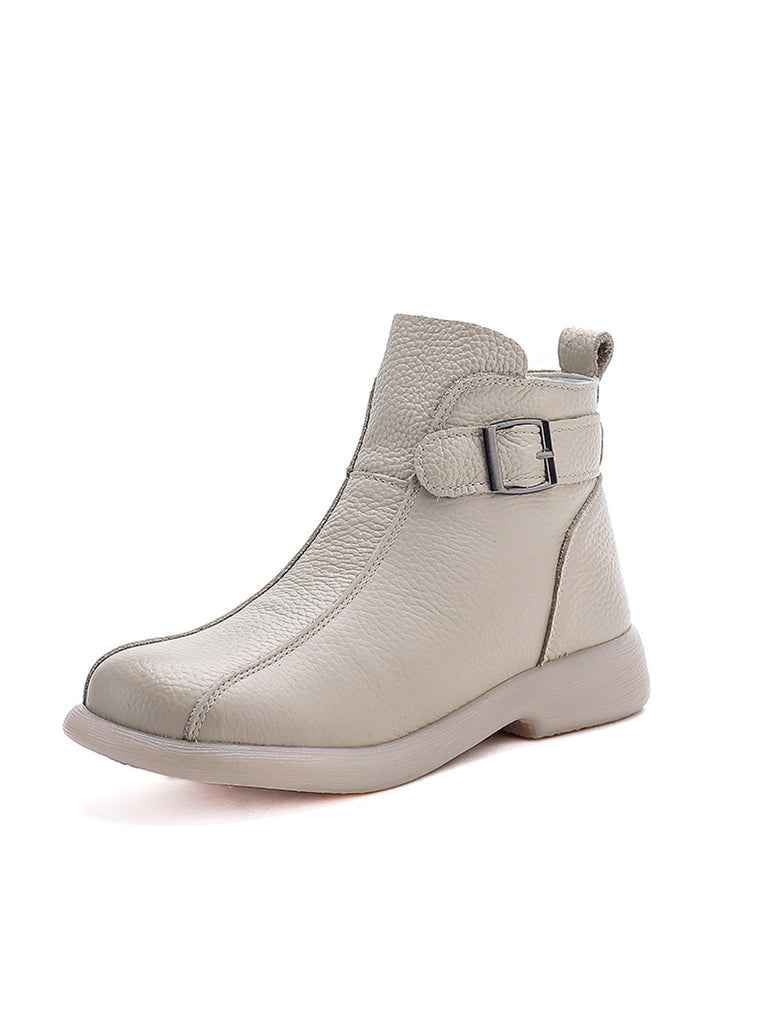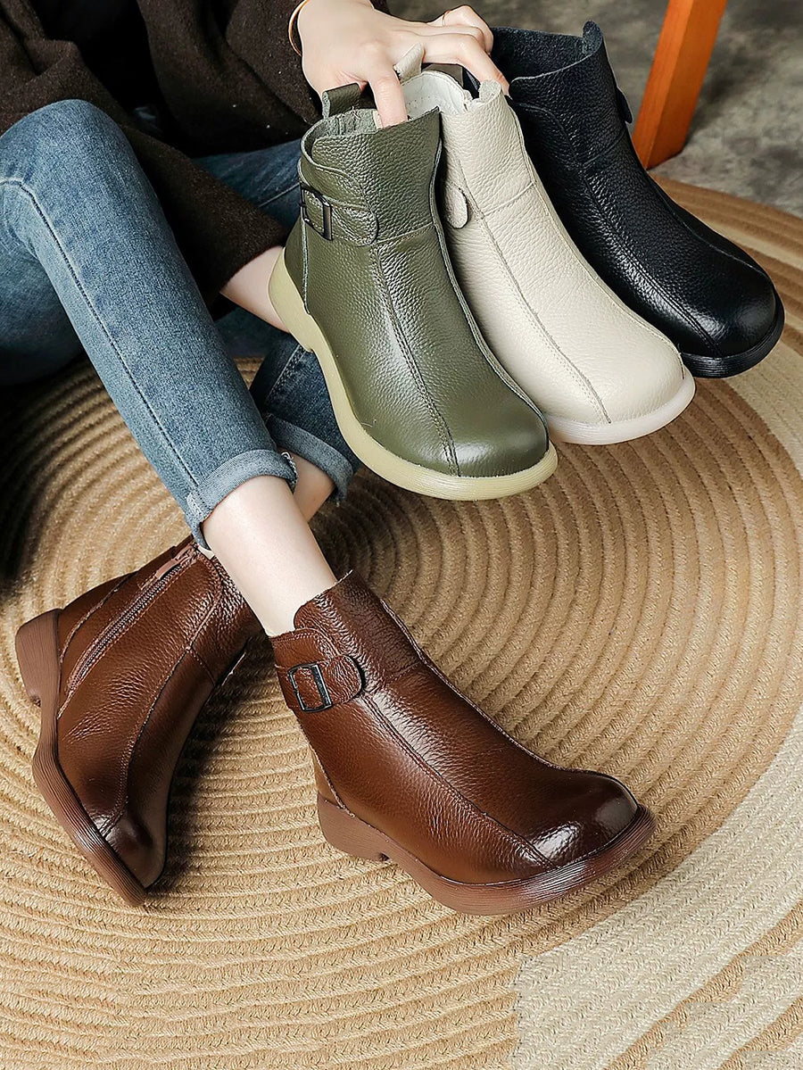 Women Genuine Leather Fleece-lined Ankle Boots
