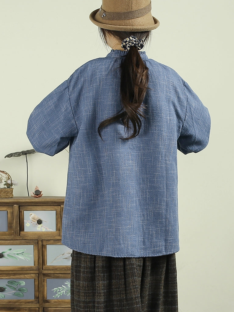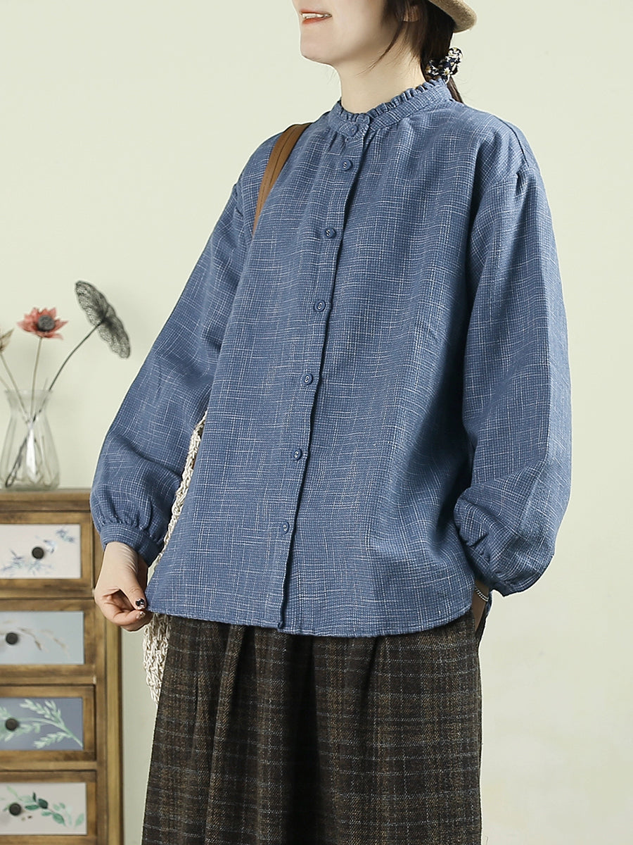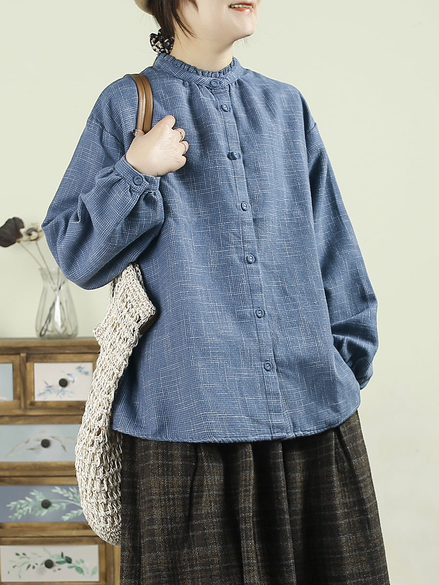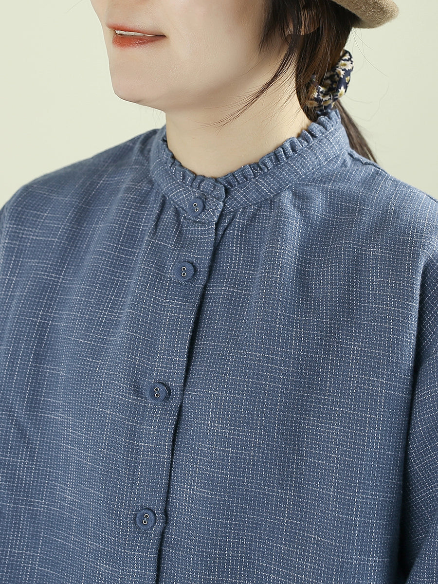 This essential winter blouse combines a 60% polyester and 40% cotton composition for reliable durability and wearability. Featuring a structured stand collar and full-length sleeves in a relaxed fit, it transitions seamlessly from season to season. The understated solid colorway pairs effortlessly with your existing wardrobe, making it an indispensable piece for autumn and winter layering. Modeled by someone 163cm tall and 46kg, the fit demonstrates a refined, comfortable silhouette.