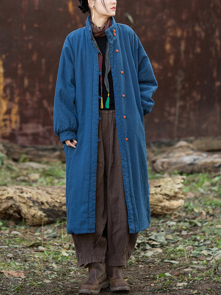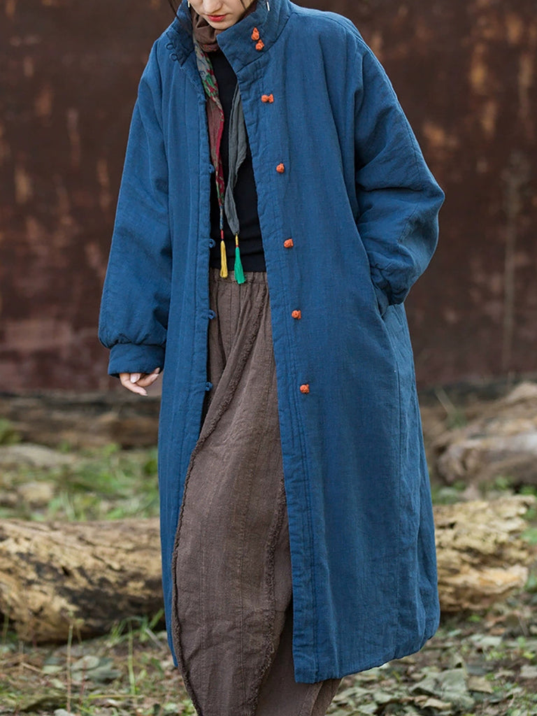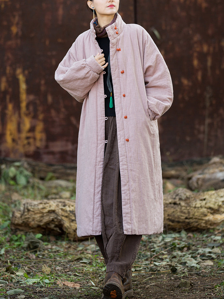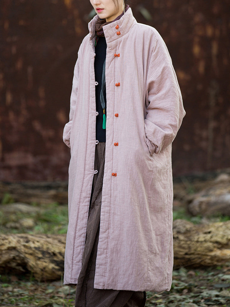 Women Winter Pure Color Stand Collar Padded Overcoat