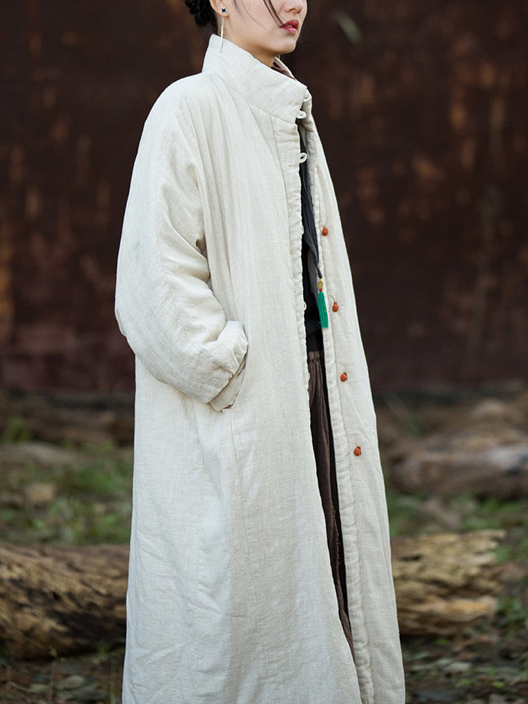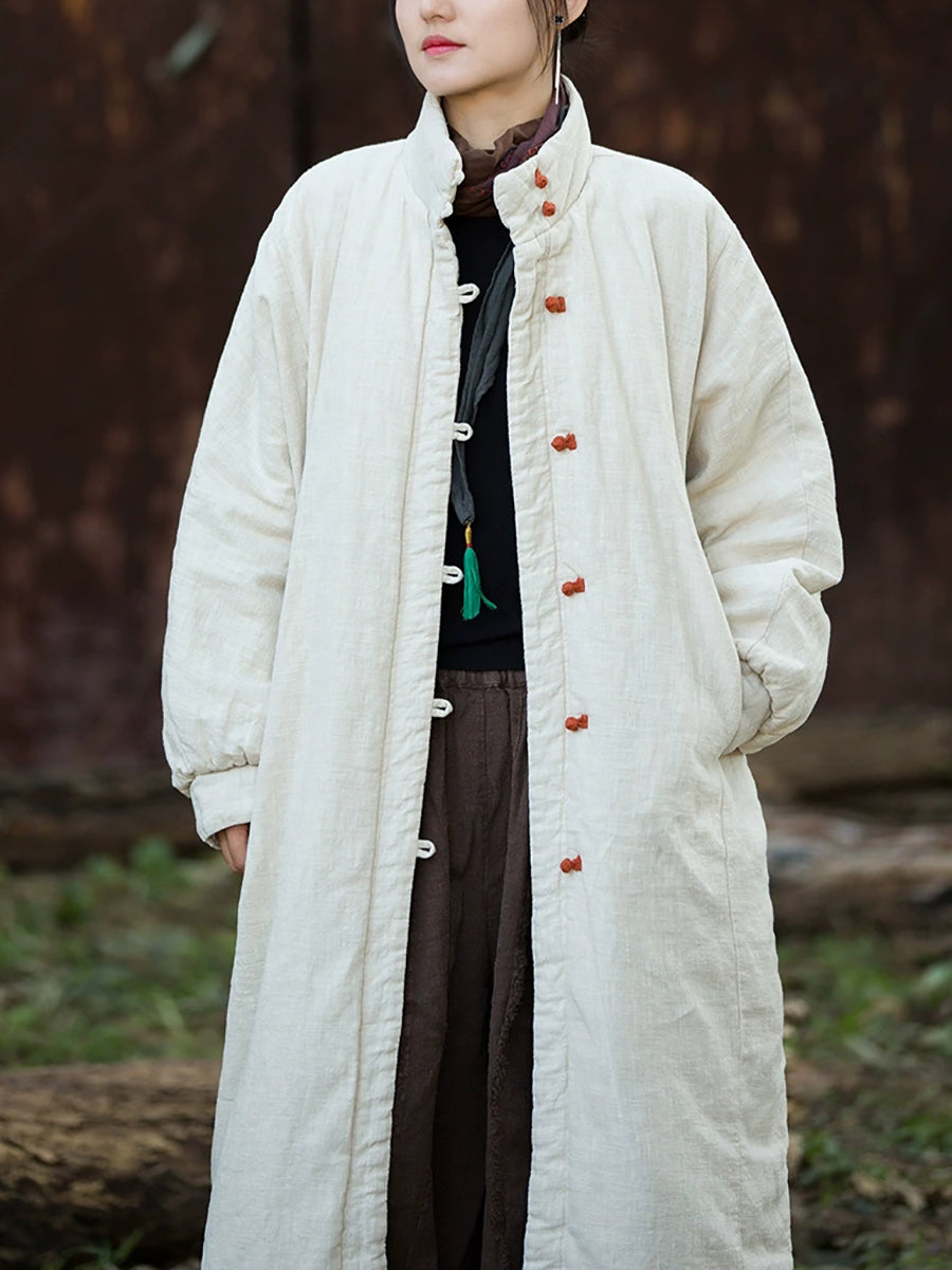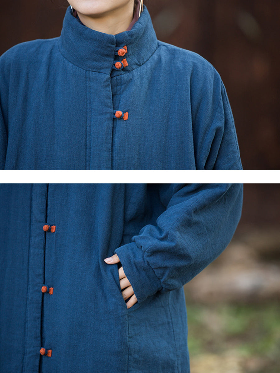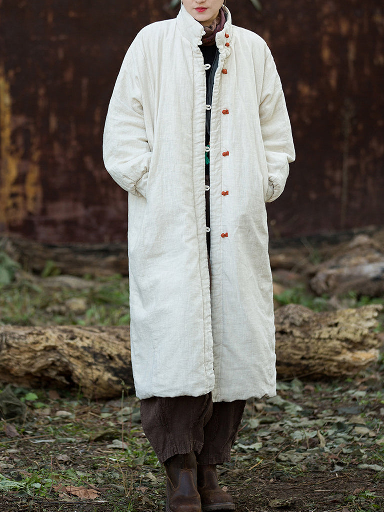 Women Winter Pure Color Stand Collar Padded Overcoat