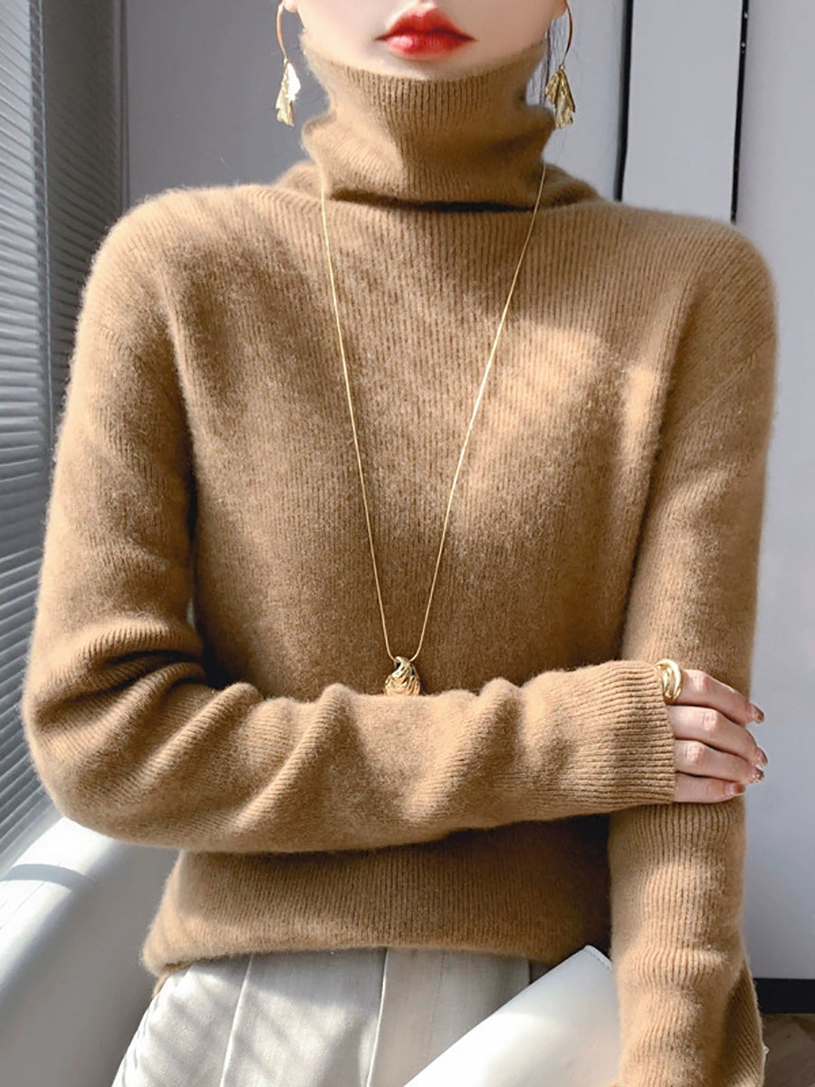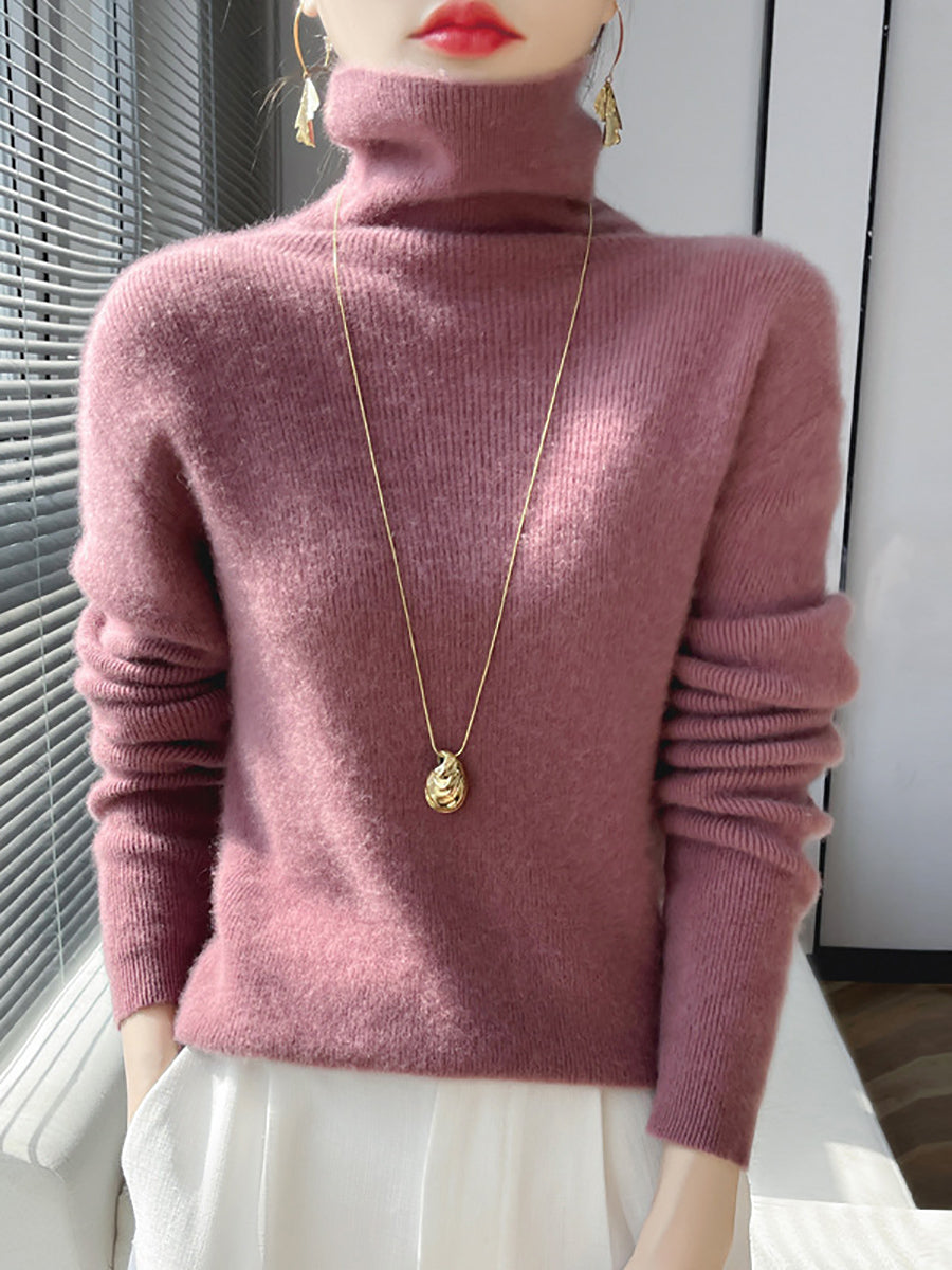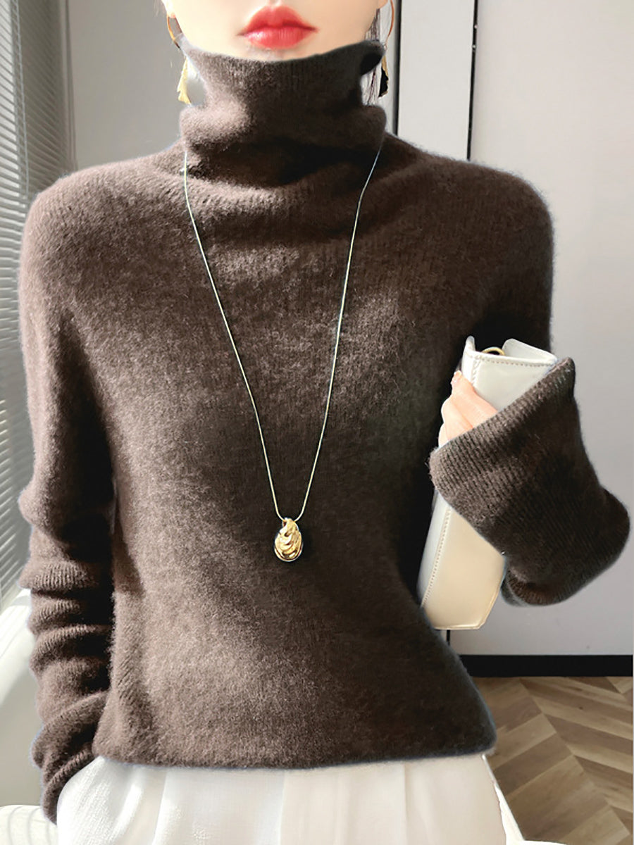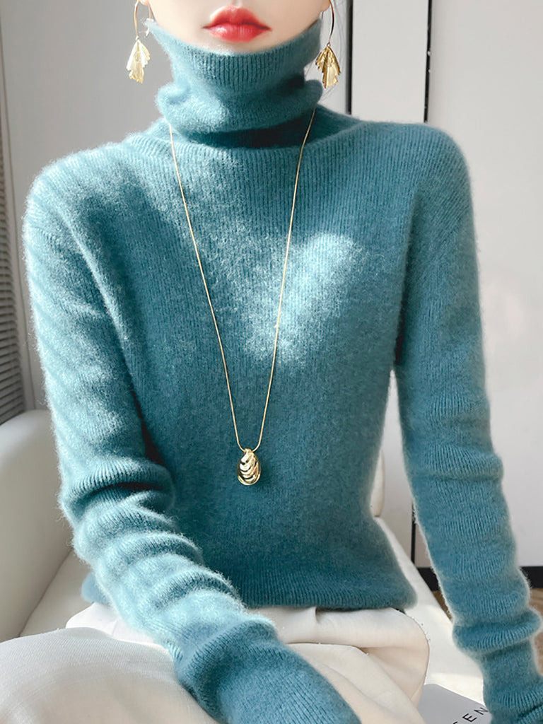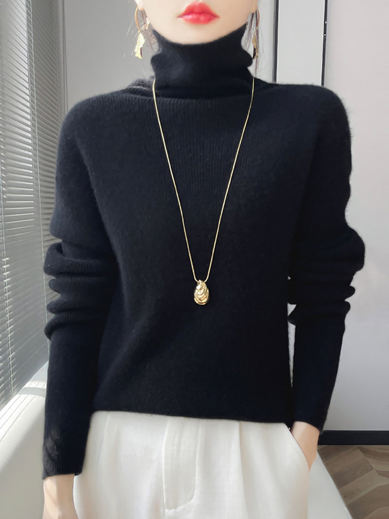 Women Winter Casual Pure Color Turtleneck Bottom Blouse