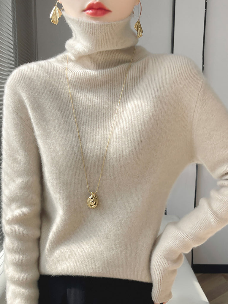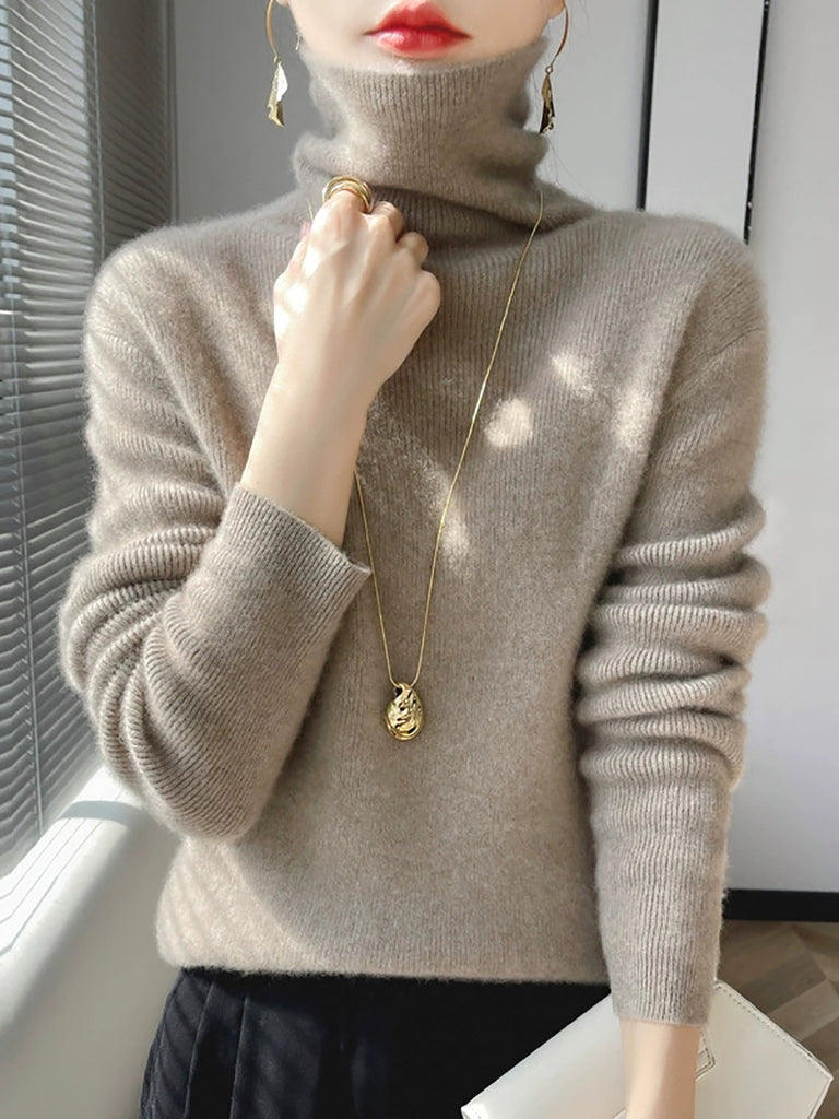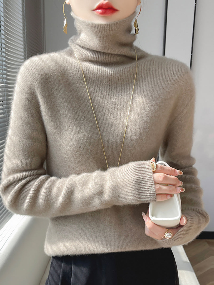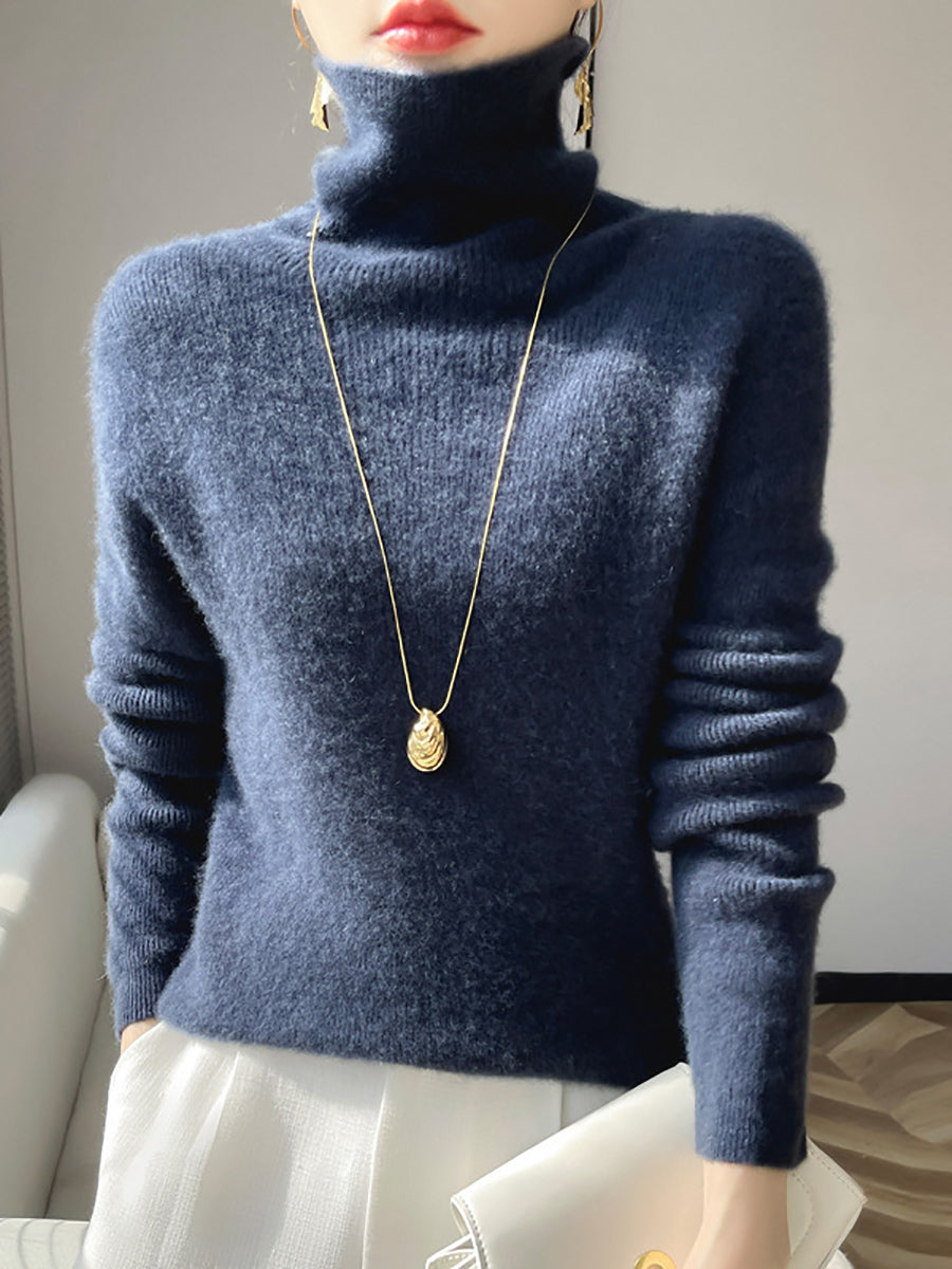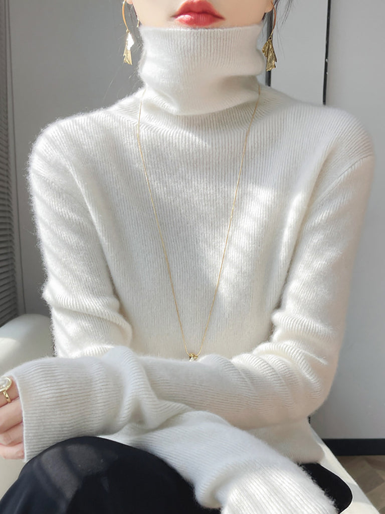 Women Winter Casual Pure Color Turtleneck Bottom Blouse