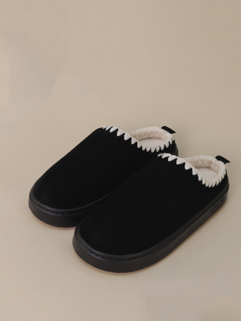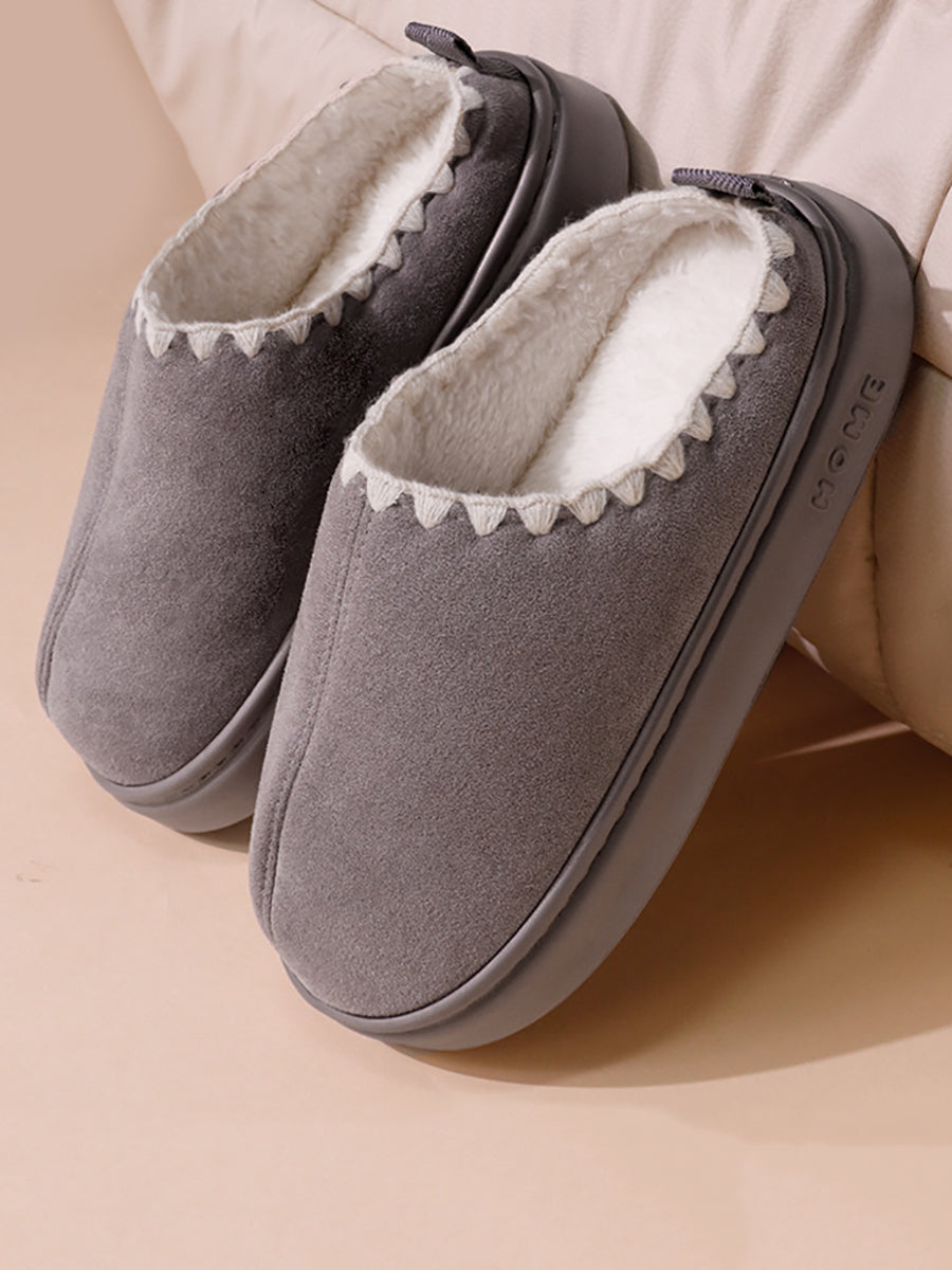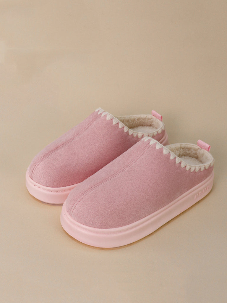 Couple Winter Casual Pure Color Fleece-lined Indoor Slippers