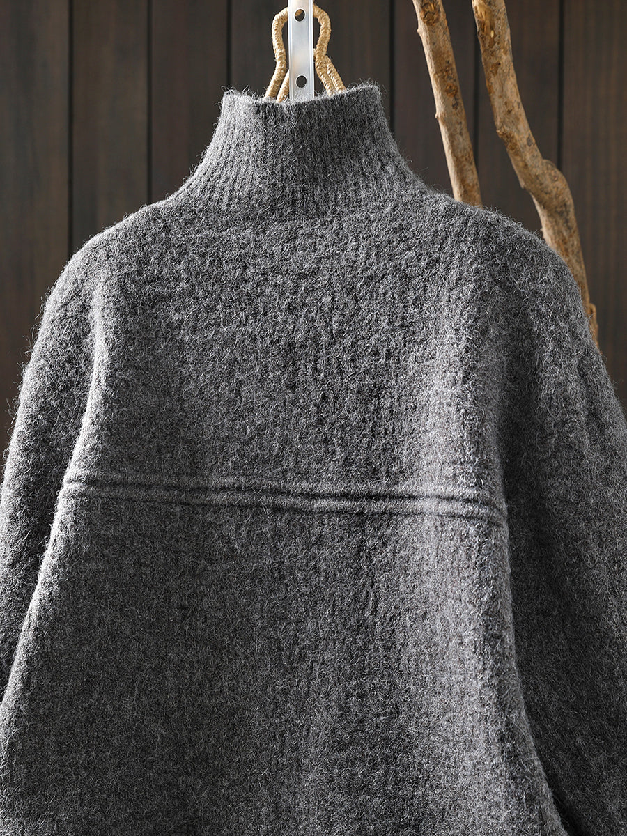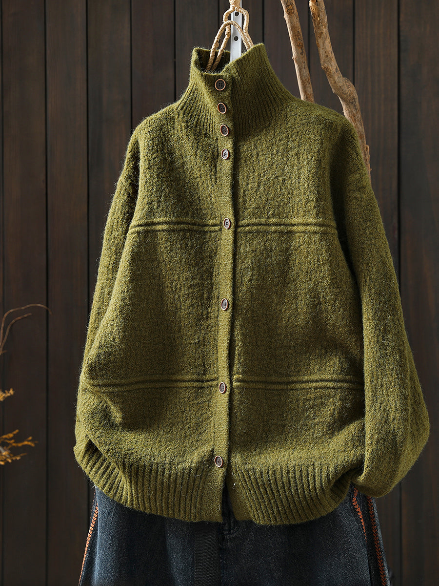 Women Autumn Artsy Pure Color Turtleneck Cardigan Sweater