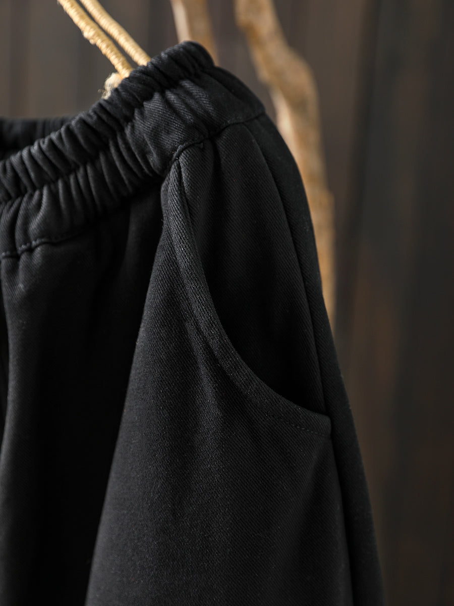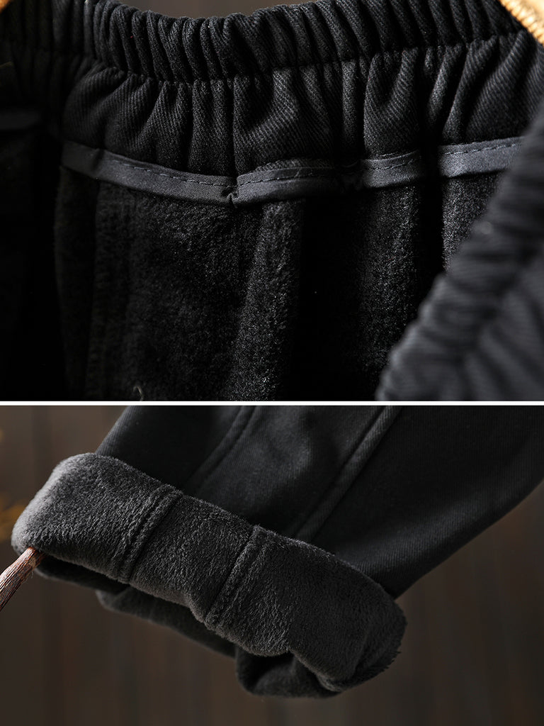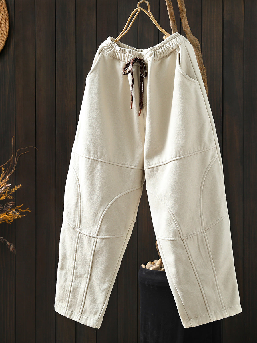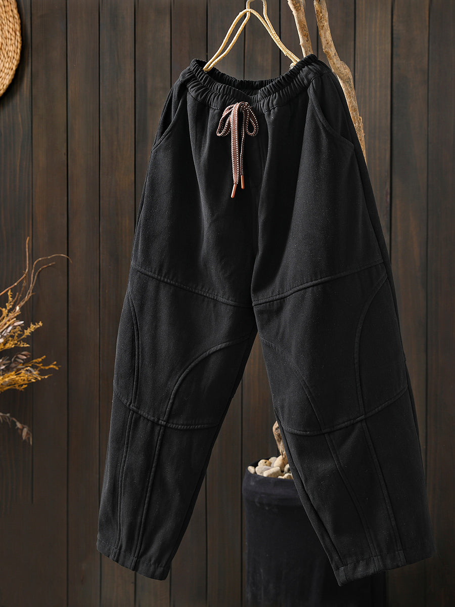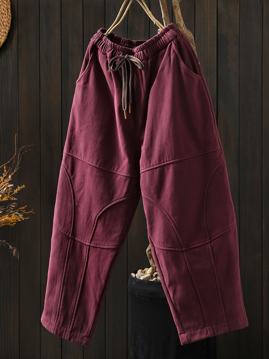 Women Winter Retro Pure Color Fleece-lined Harem Pants