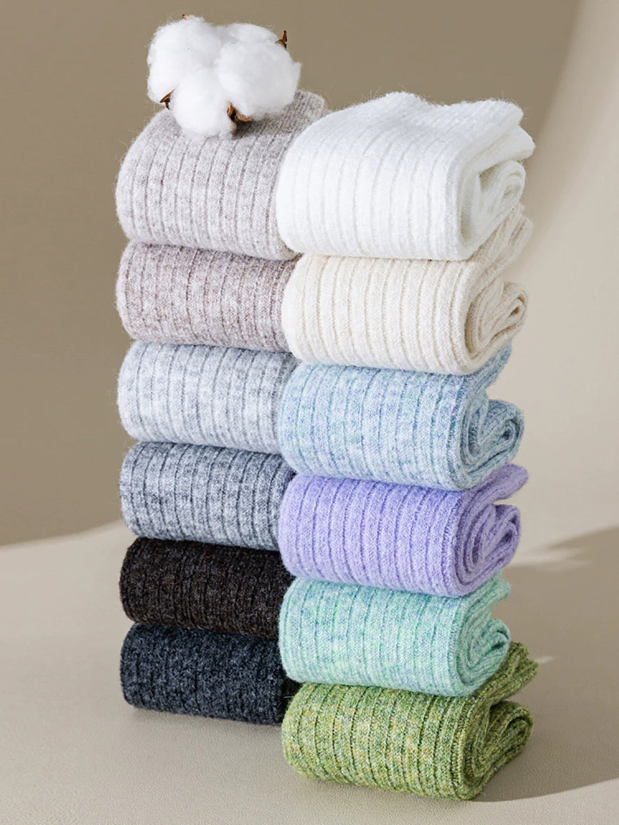5 Pairs Women Winter Warm Pure Color Socks