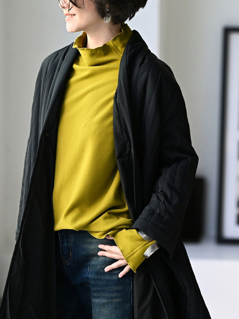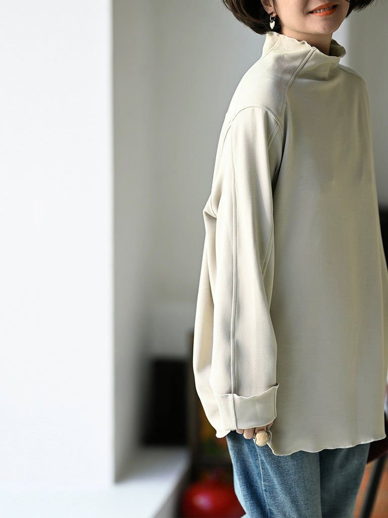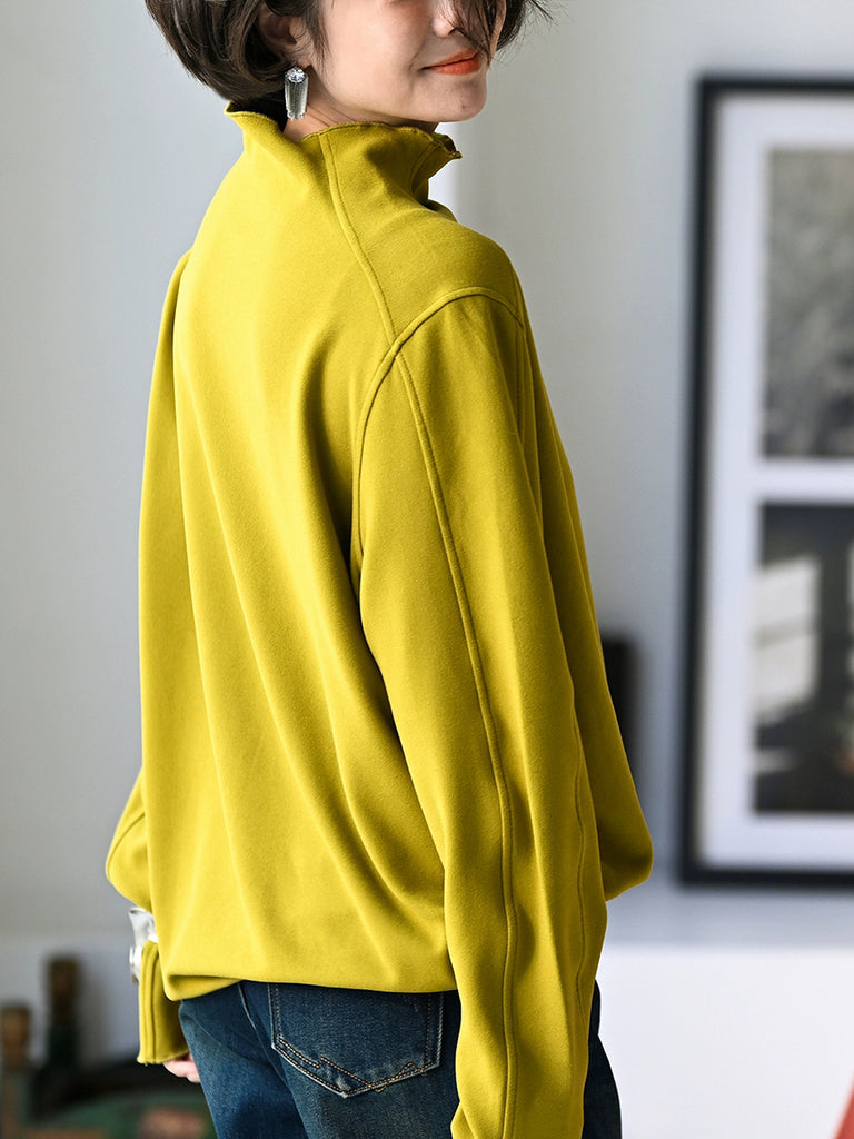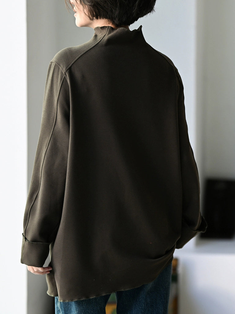 Women Casual Autumn Pure Color Turtleneck Blouse