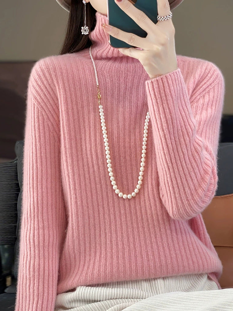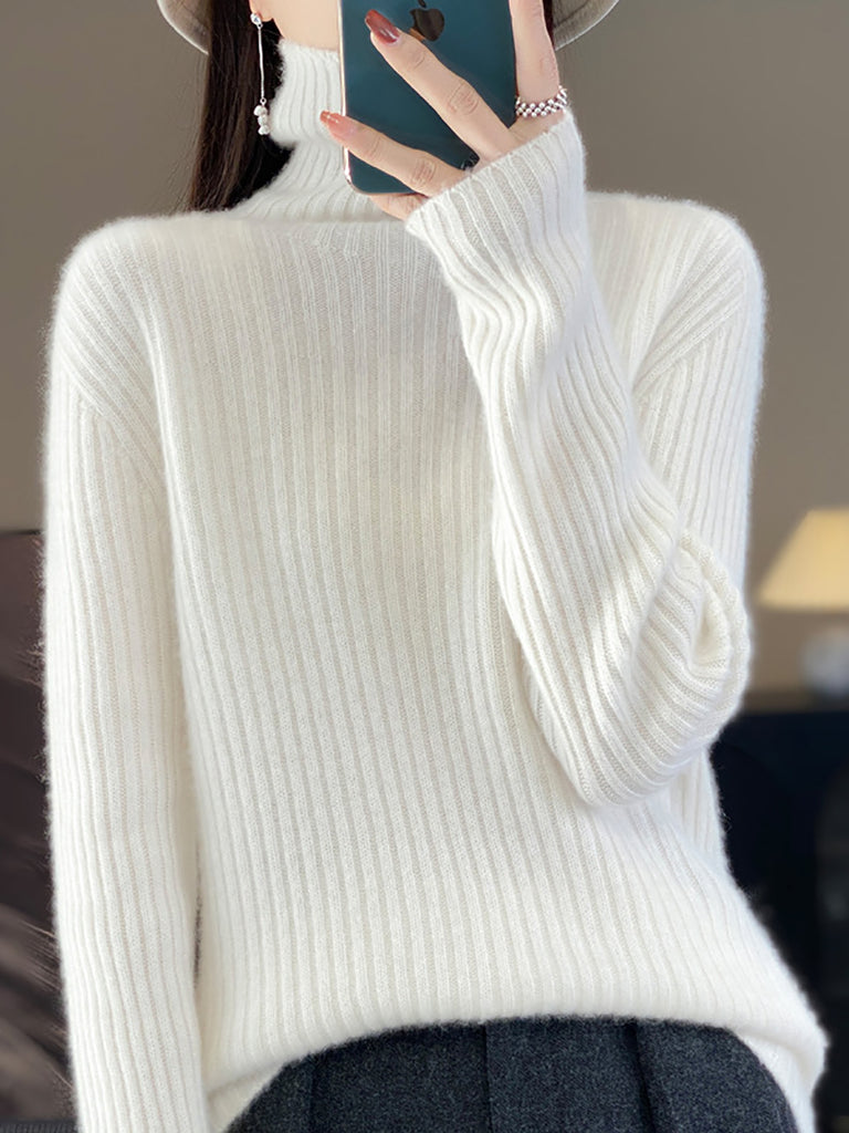 Women Winter Pure Color Wool Turtleneck Sweater