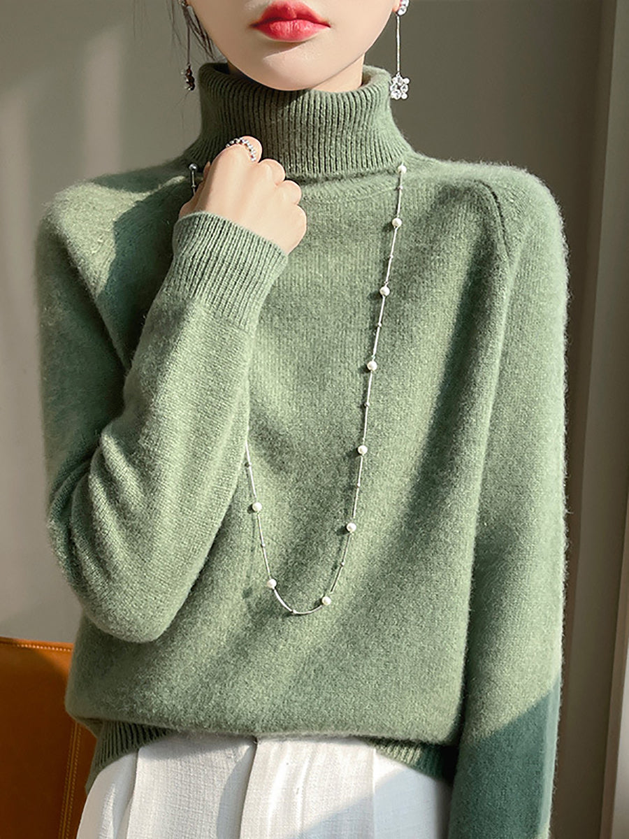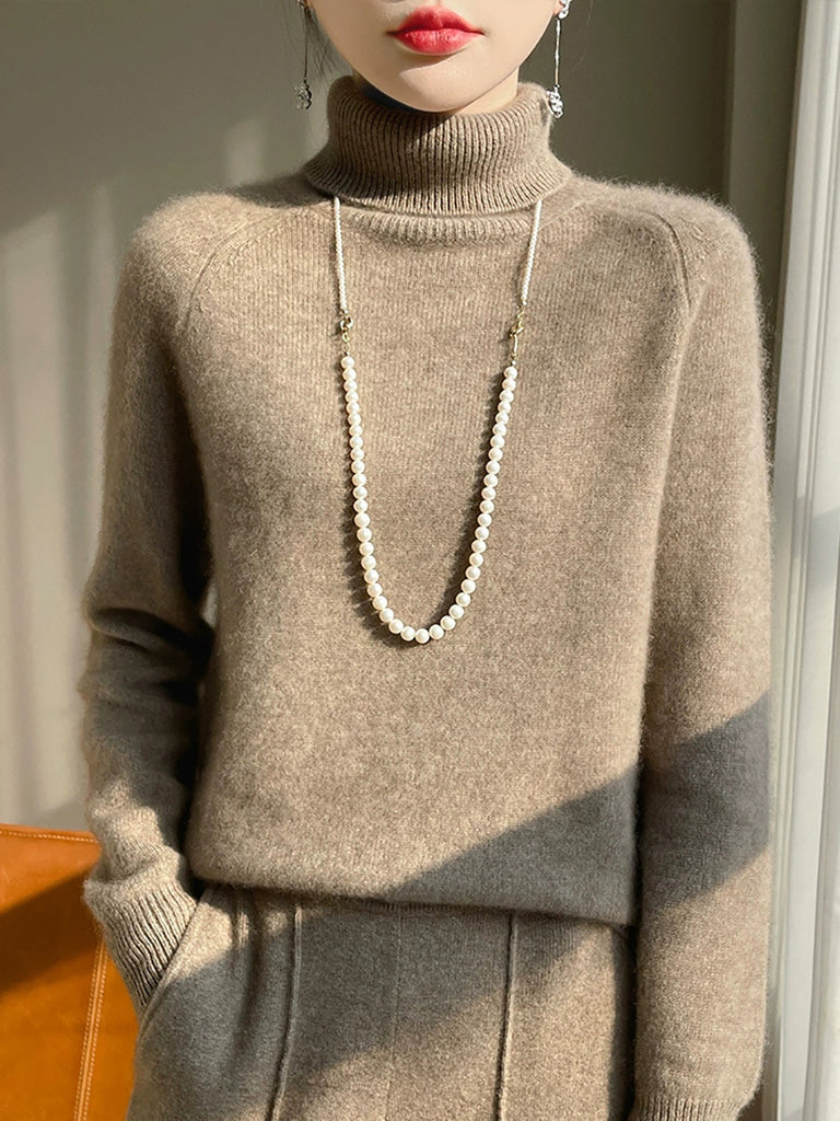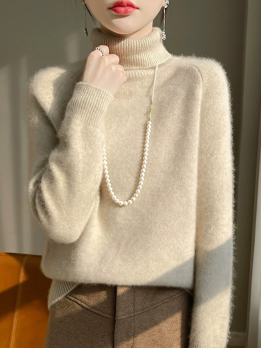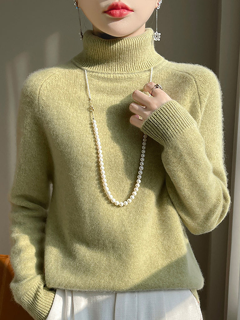 Women Winter Pure Color Turtleneck 100%Wool Sweater