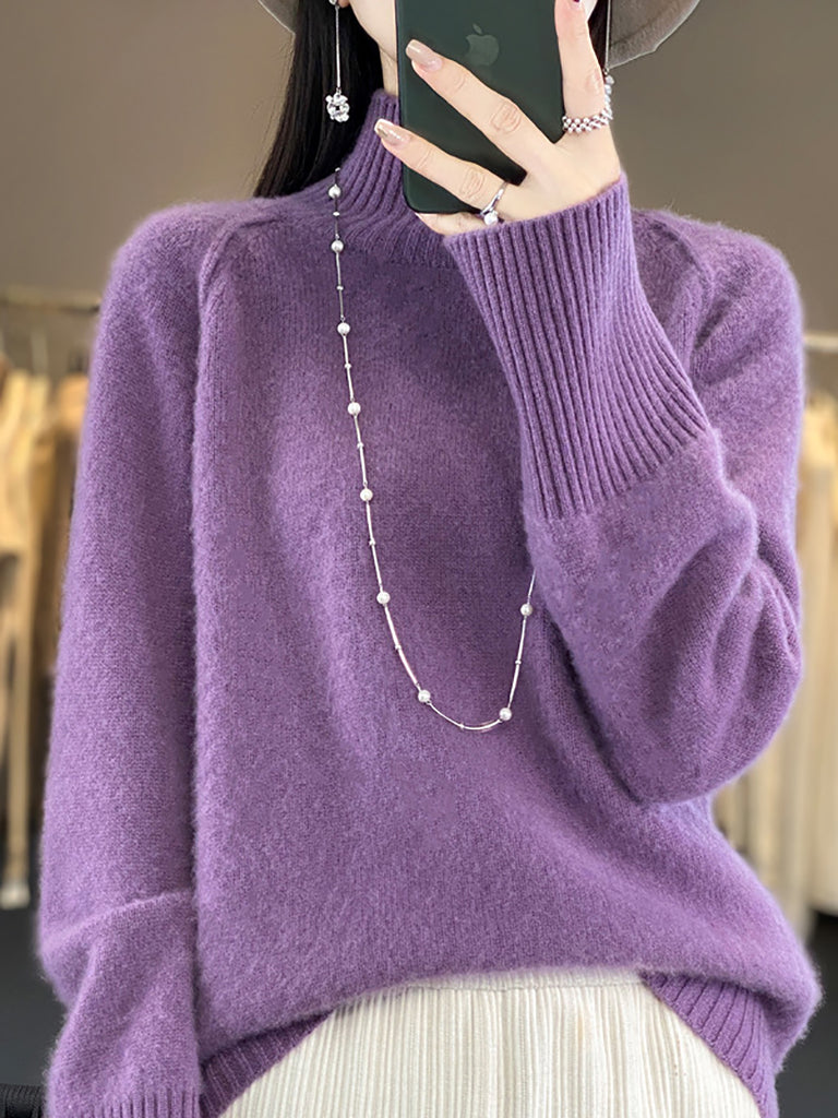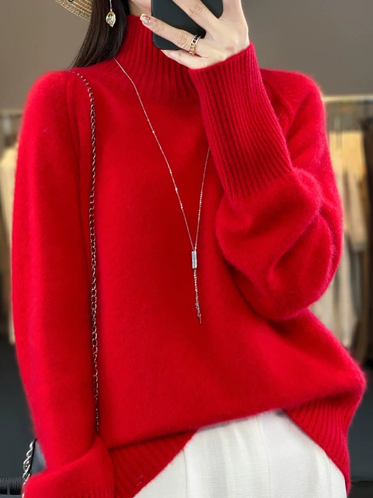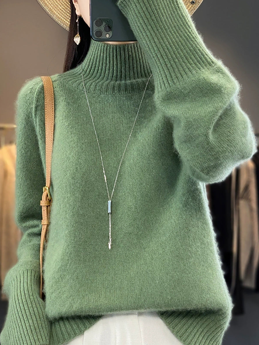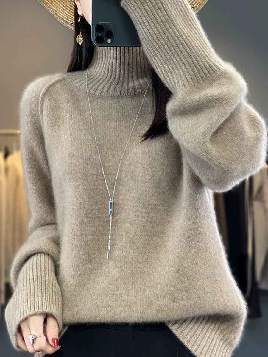 Women Winter Casual Pure Color Knitted Turtleneck Sweater
