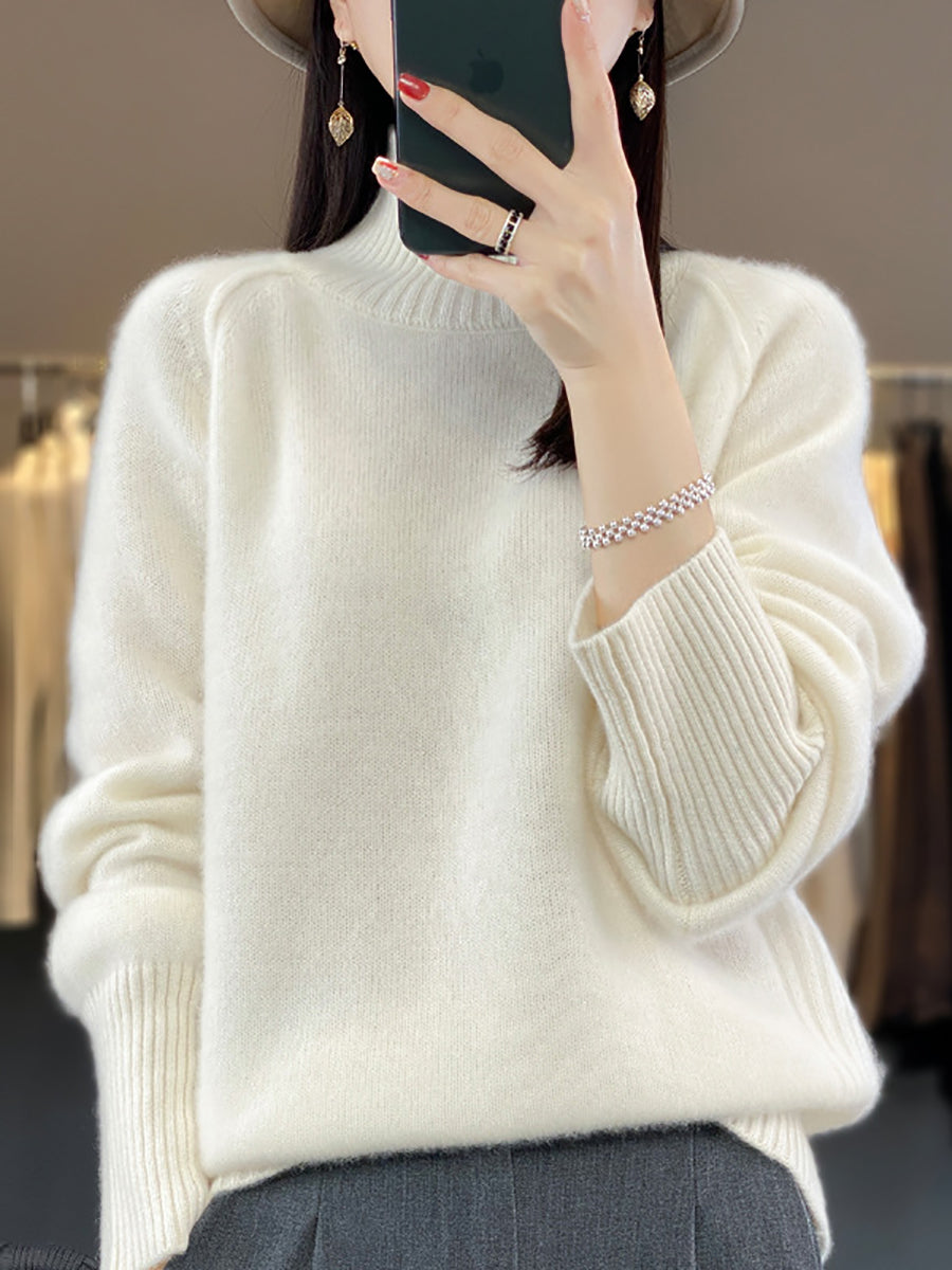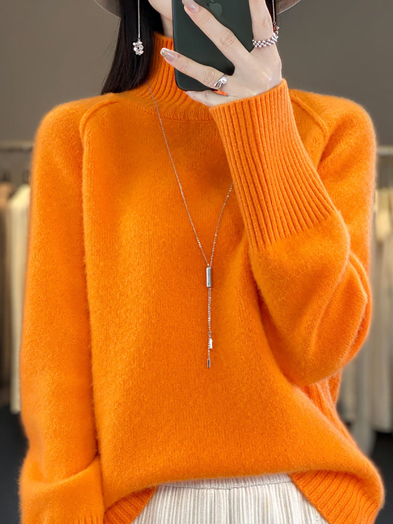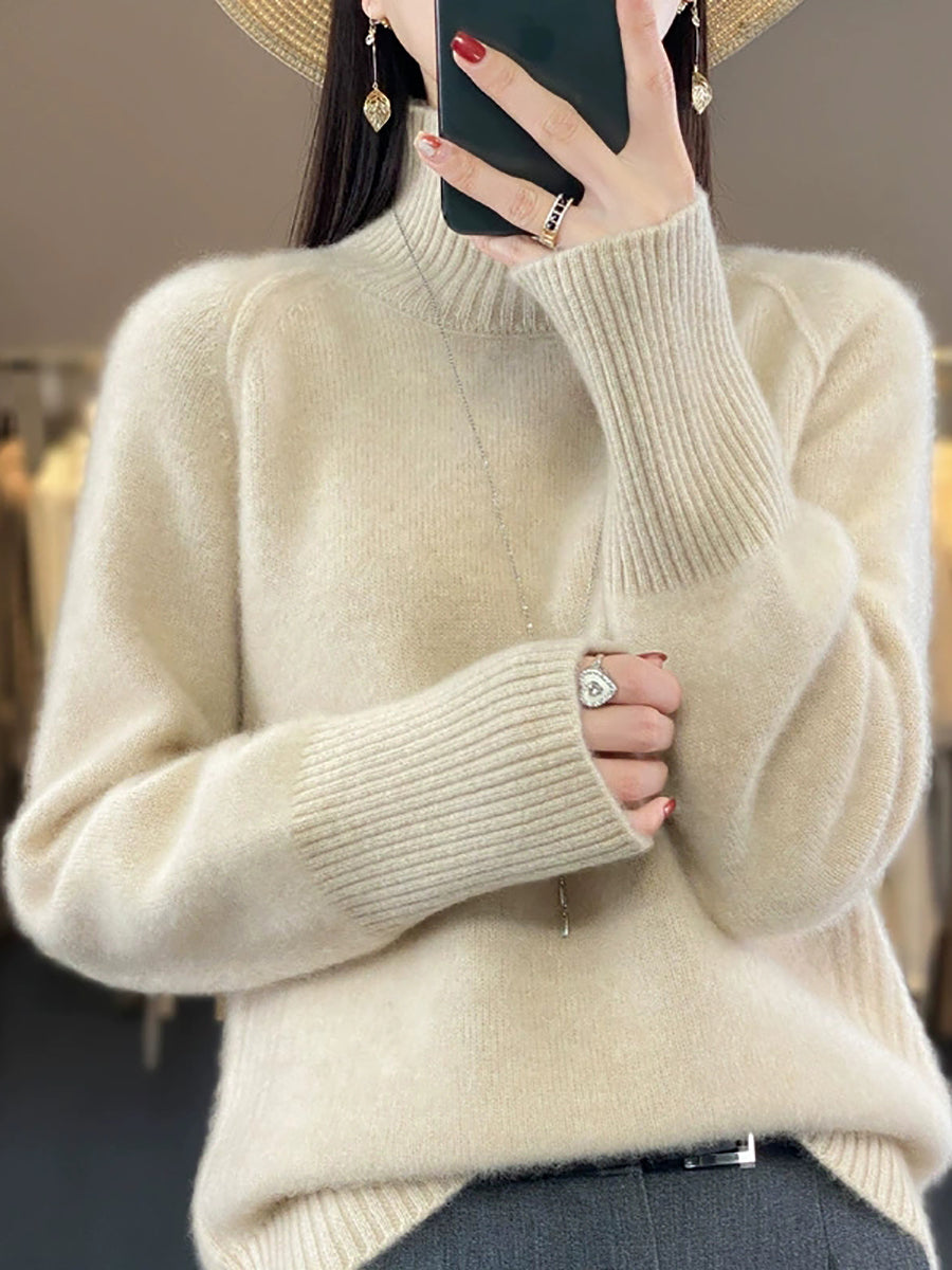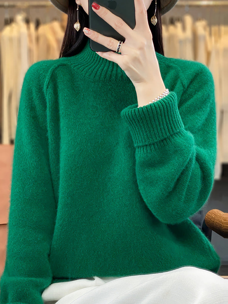 Women Winter Casual Pure Color Knitted Turtleneck Sweater