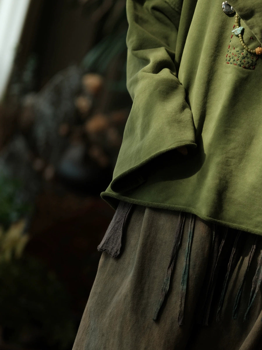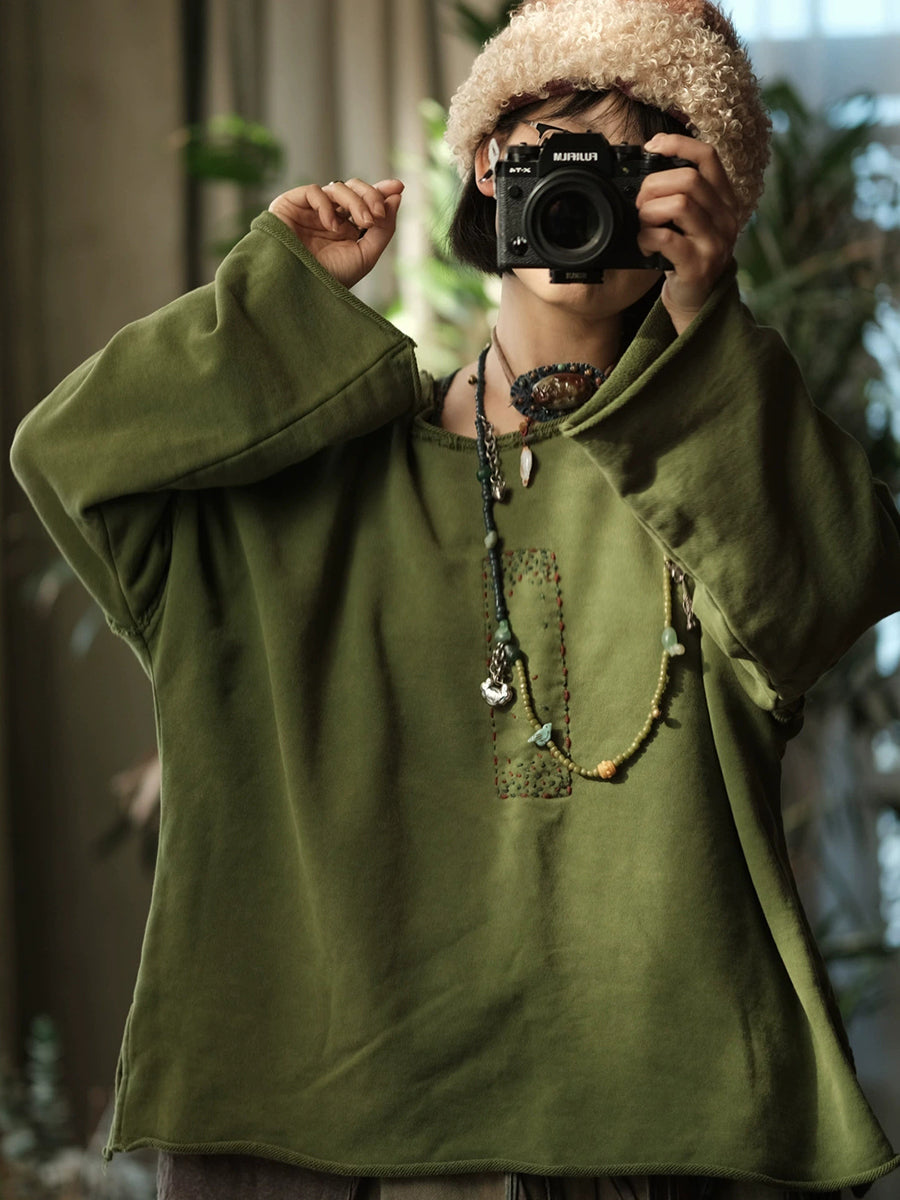 Women Winter Retro Pure Color Stitching O-Neck Blouse